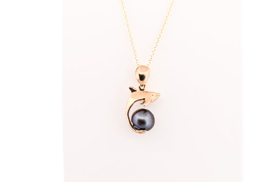 Estate Dolphin Pendant with Tahitian Pearl in 14k Yellow Gold