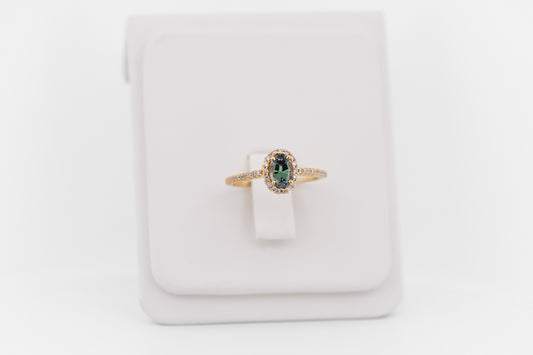 Radiant Cut Teal Spinel Engagement Ring in Simple Yellow Gold Setting