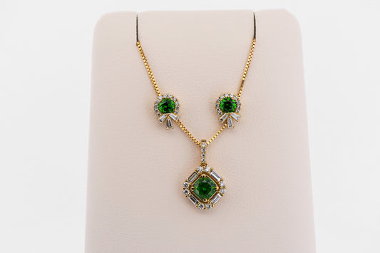 Top Quality Oval Emerald & Diamond Necklace in Two Tone Gold