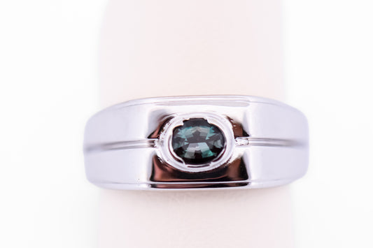 Gents White Gold & Natural Alexandrite Wedding Ring- Strong Color Change