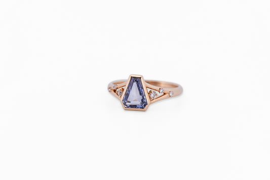 Low-Profile Engagement Ring with Periwinkle Sapphire Hexagon Bezel-Set in Yellow Gold