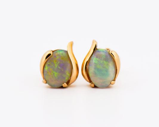 Australian Crystal Opal Studs in Yellow Gold