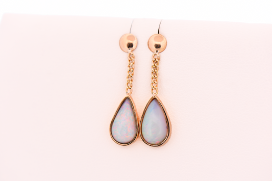 Top Quality Brazilian Opal Dangle Earrings in 14k Yellow Gold