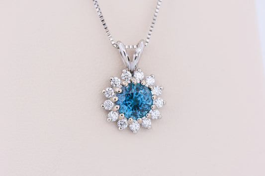 Top Quality Natural Blue Zircon Pendant with Diamond Halo