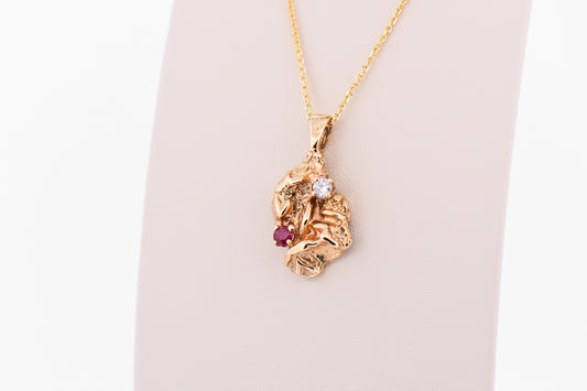 Vintage Poured 14k Gold Nugget Pendant with Ruby & Diamond