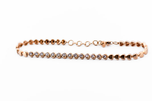 Yellow Gold & Diamond Bracelet with Heart-Shaped Links