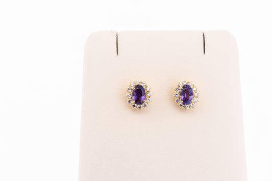 Rare Purple Sapphire & Diamond Halo Stud Earrings