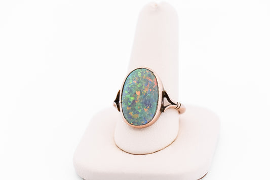 Amazing 9k Rose Gold Ring with Solitaire Puzzle-Pattern Black Opal