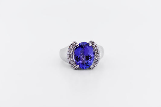 Estate Low-Profile White Gold Ring with 3.74ct Tanzanite