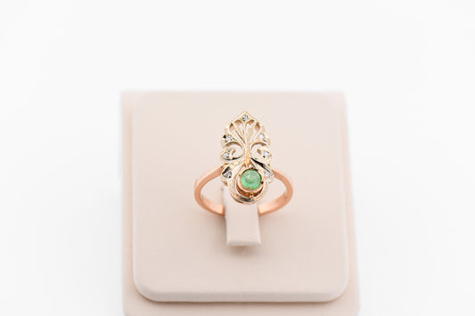 Antique Russian Rose Gold Cabochon Emerald & Diamond Ring