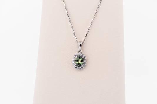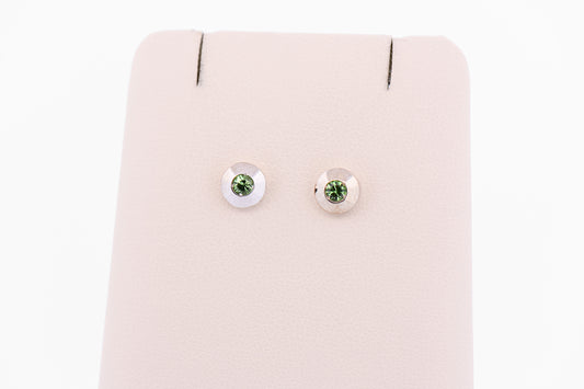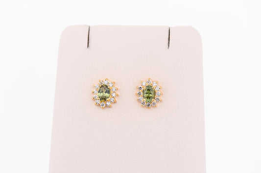 Namibian Demantoid Garnet & Diamond Halo Stud Earrings