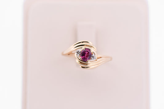 Dainty Swirly Bypass Ring with Purple Sapphire & Diamonds