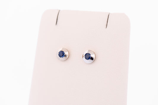 Estate Bezel Set Blue Sapphire Stud Earrings in 14k White Gold