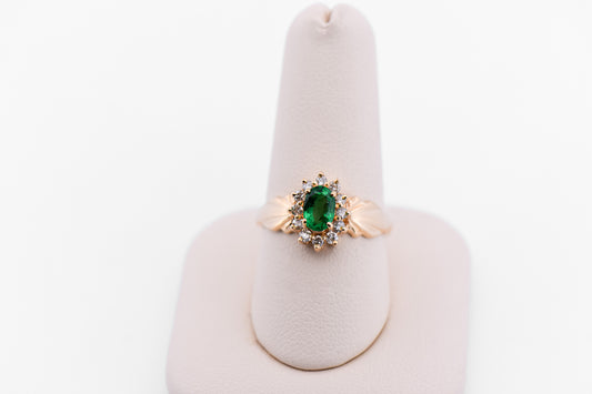 Estate Oval Emerald & Diamond Halo Ring in Yellow Gold