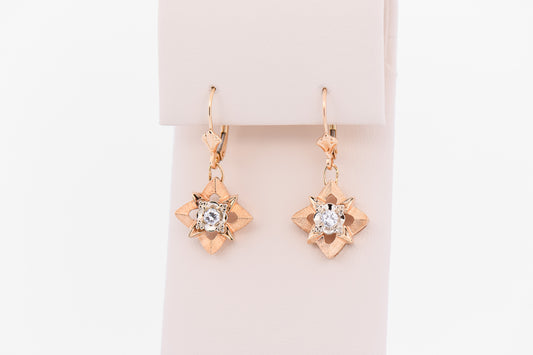 Vintage Illusion-set Dangly Diamond Earrings in Two Tone Gold