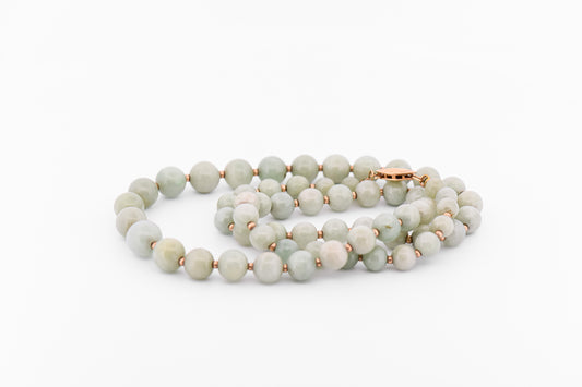 Vintage Jade Bead Necklace with Gold Accents