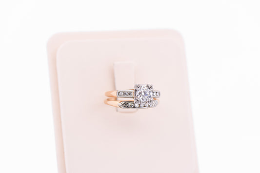 Vintage Wedding Set with Old European Cut Diamond in Two-Tone Gold