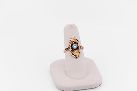 Vintage Yellow & Rose Gold Ring with Blue Zircon - Black Hills Gold Style