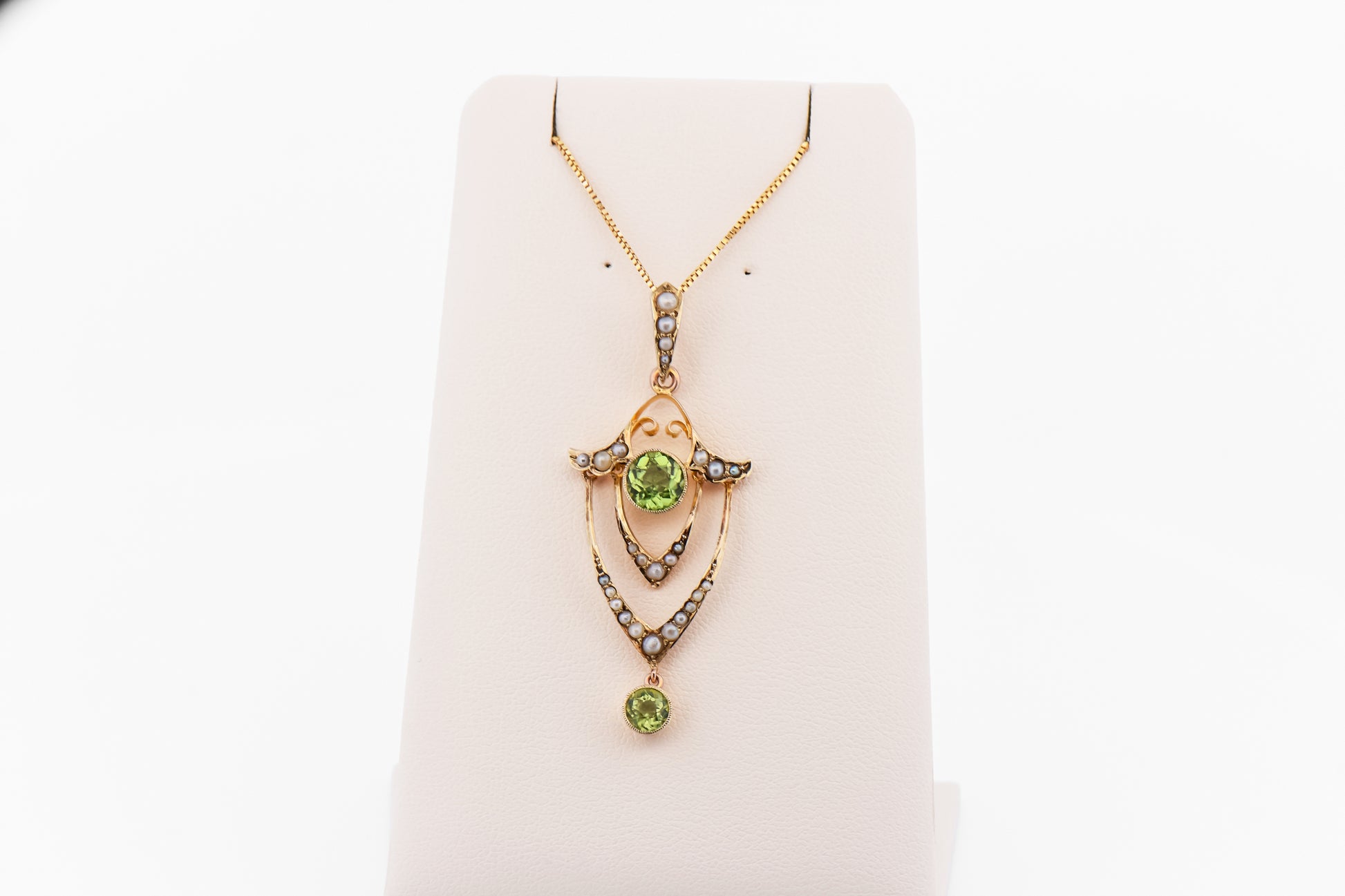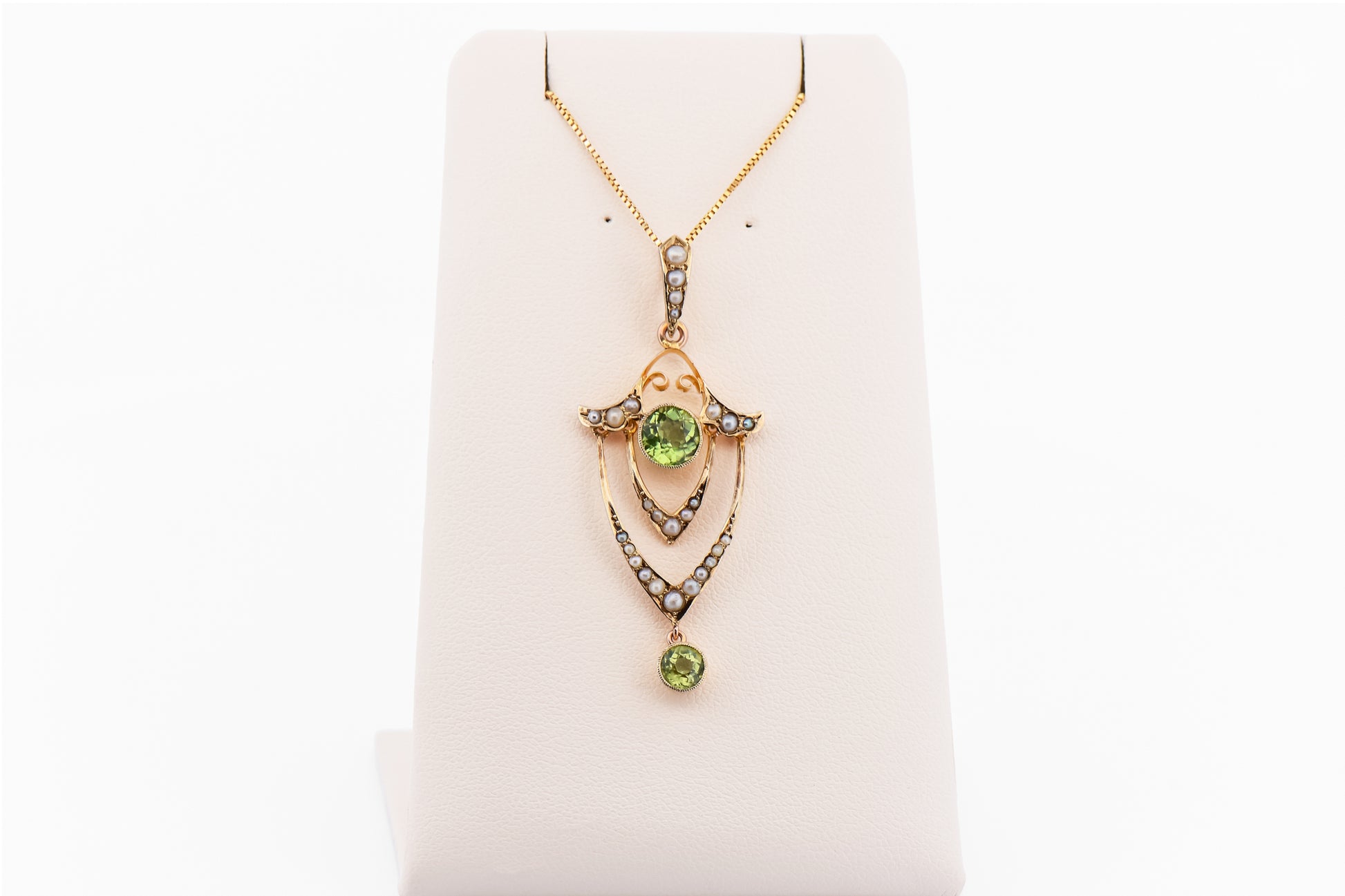 Antique Peridot & Seed Pearl Lavalier Pendant