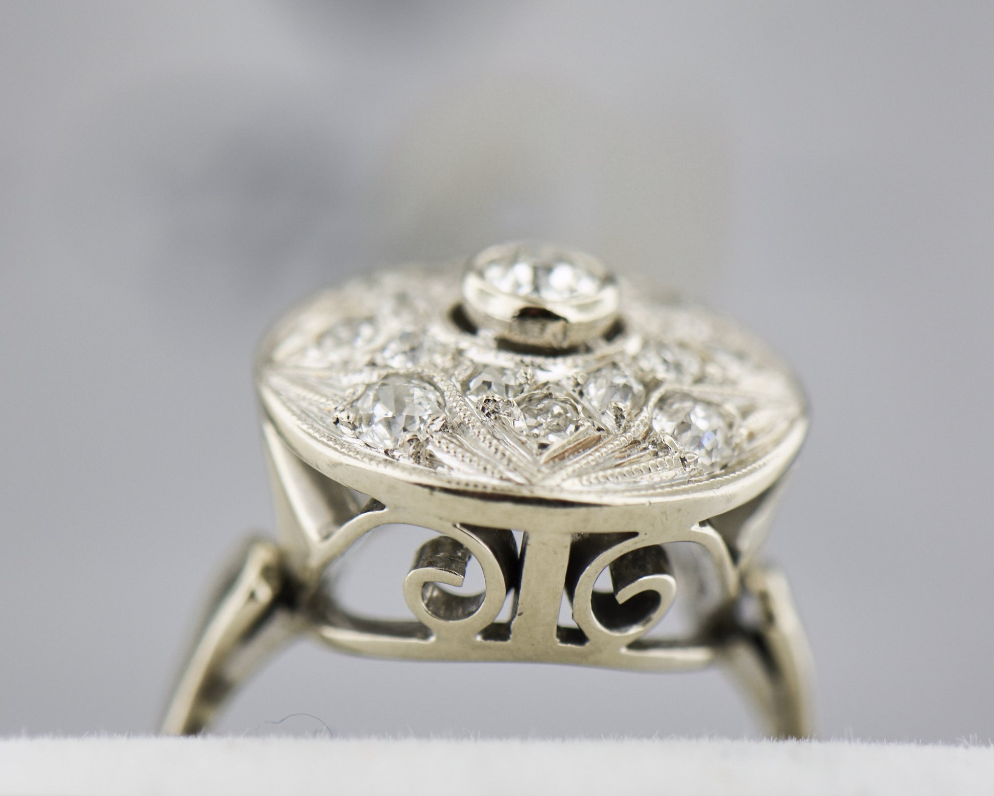 Art Deco White Gold & Diamond Filigree Shield Ring