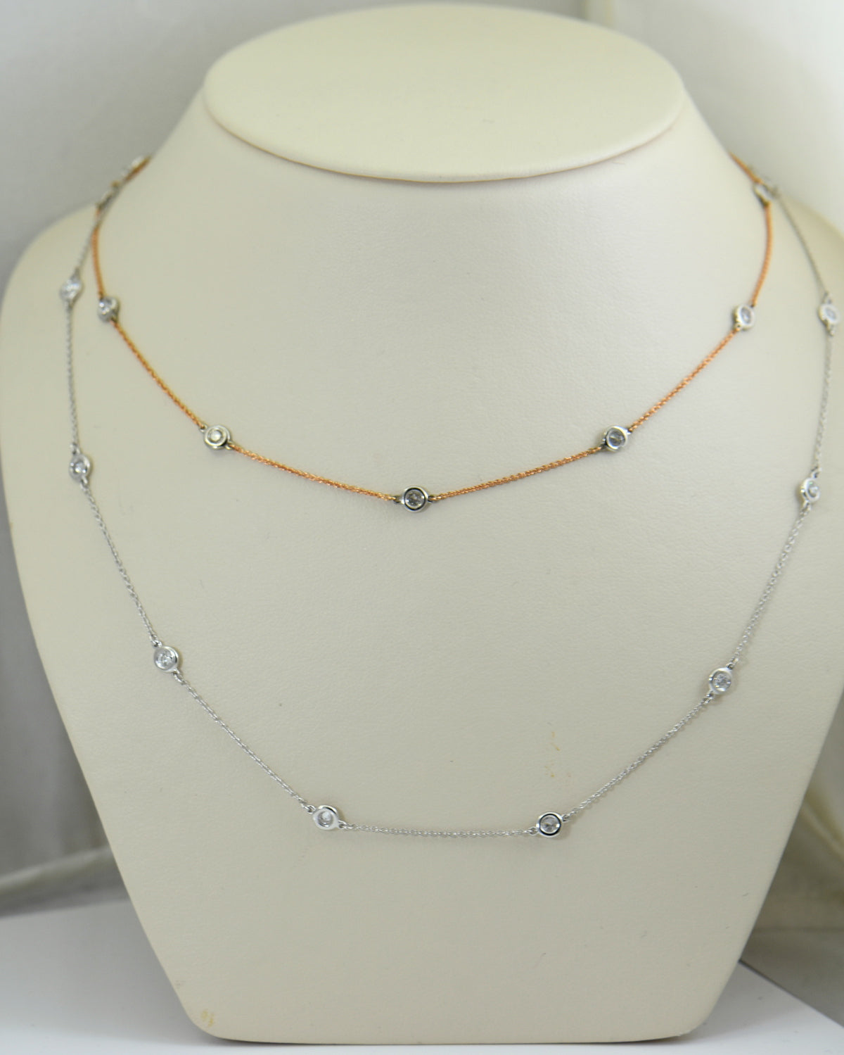Bezel Set Diamond Station Necklaces in White, Yellow or Rose Gold