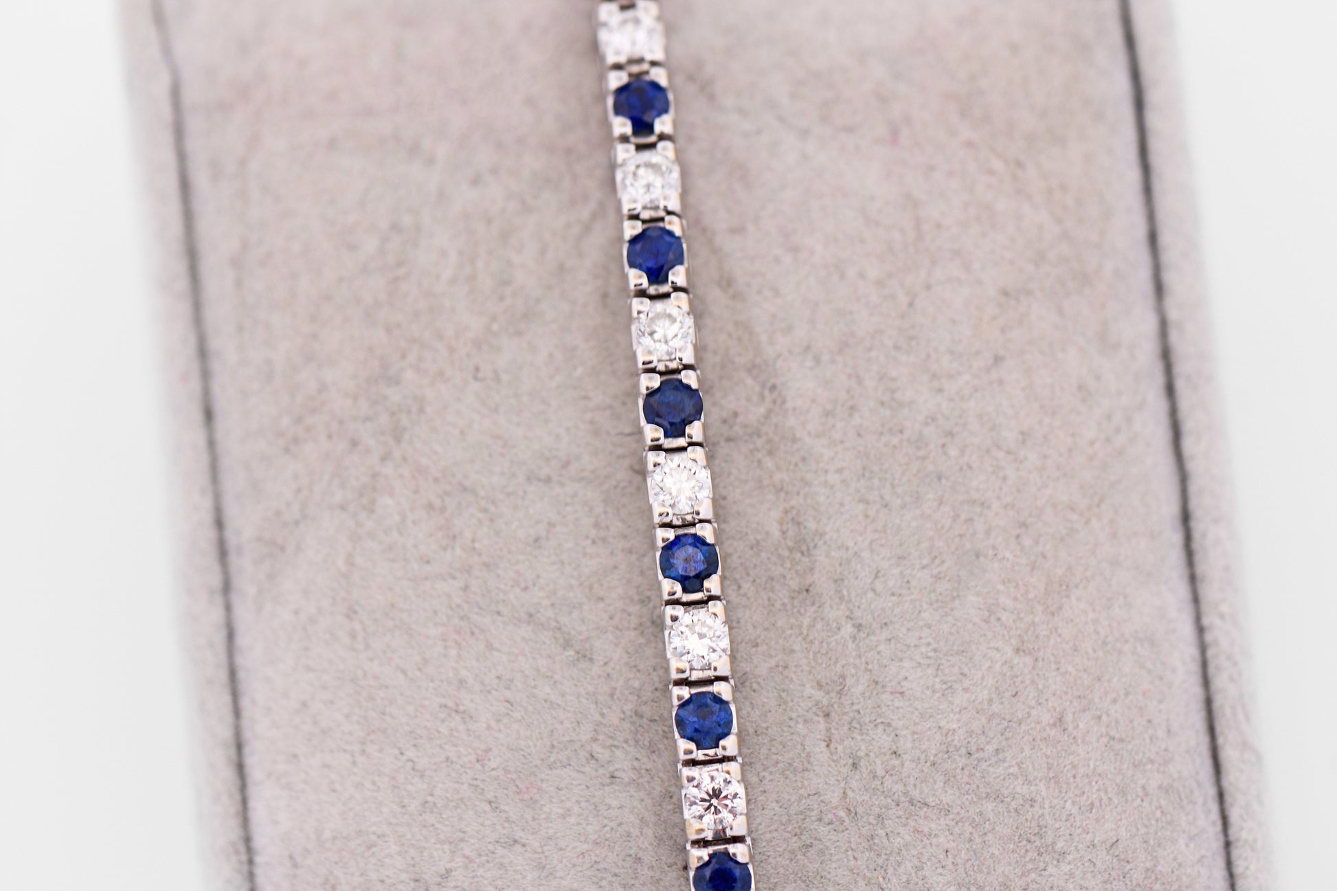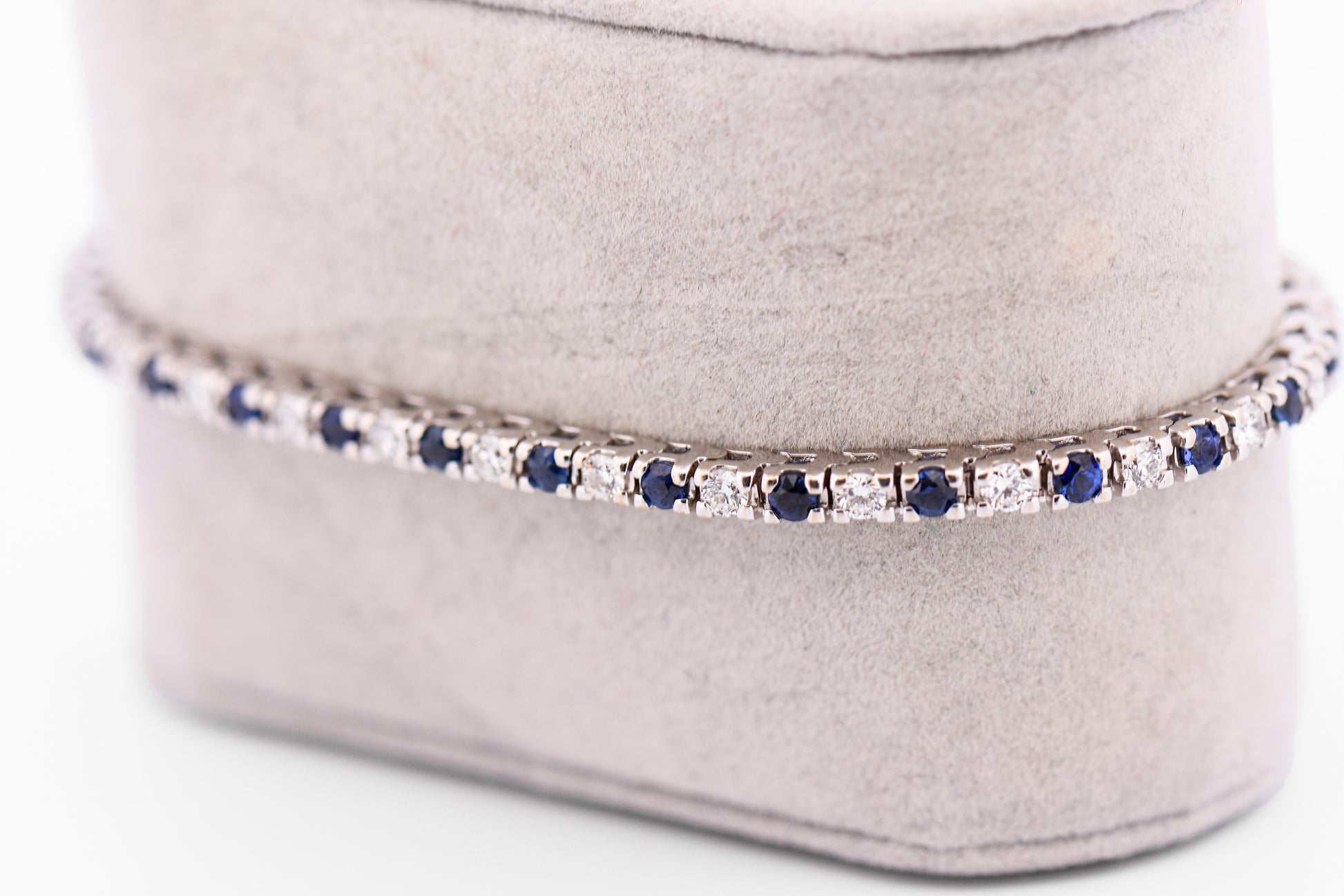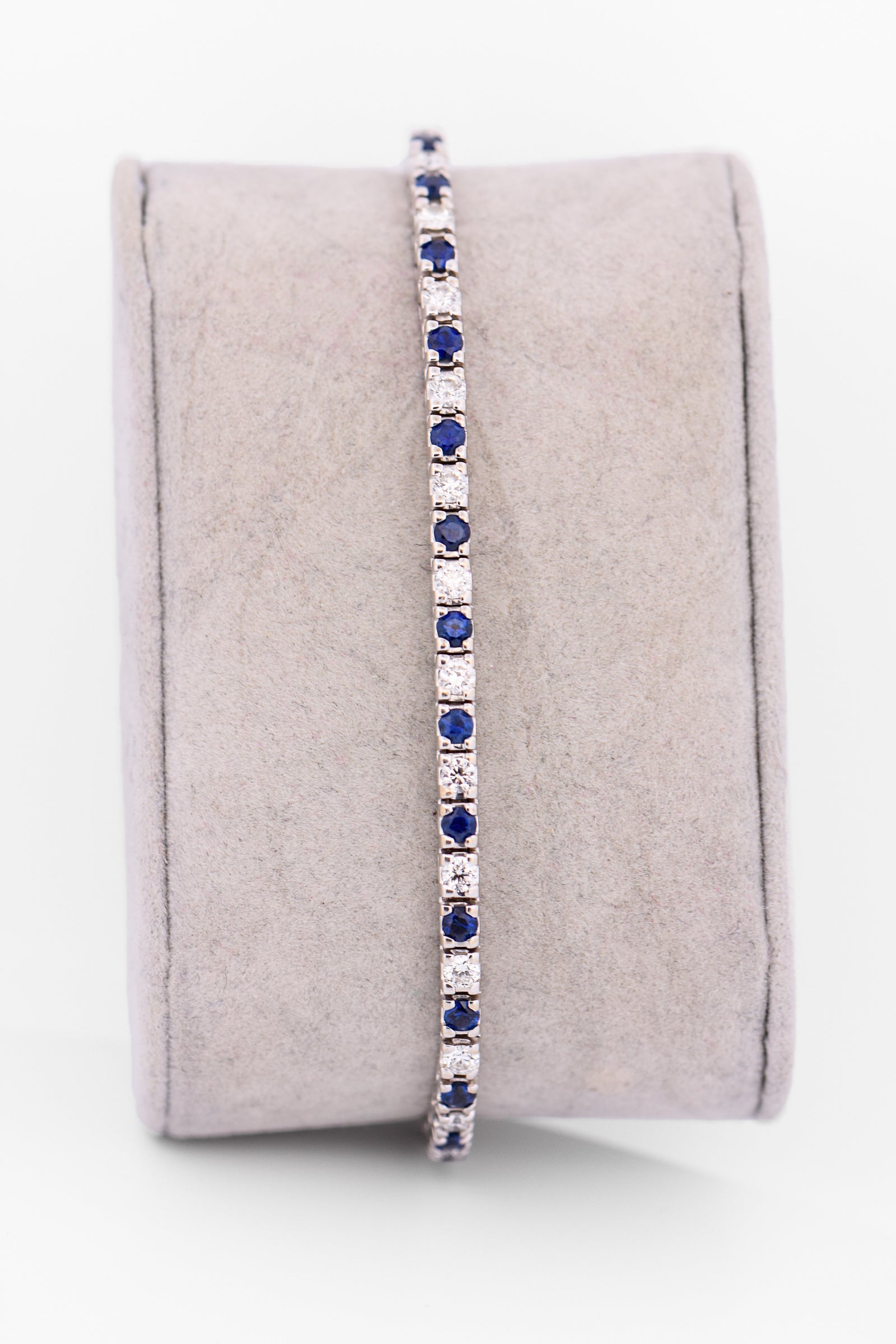 With approximately 3 carats total of sapphires and diamonds, the bracelet delivers elegant sparkle while maintaining a sleek, wearable profile. The cool tone of white gold enhances the vivid blue of the sapphires and the brilliance of the diamonds, resulting in a piece that feels both luxurious and effortlessly versatile.