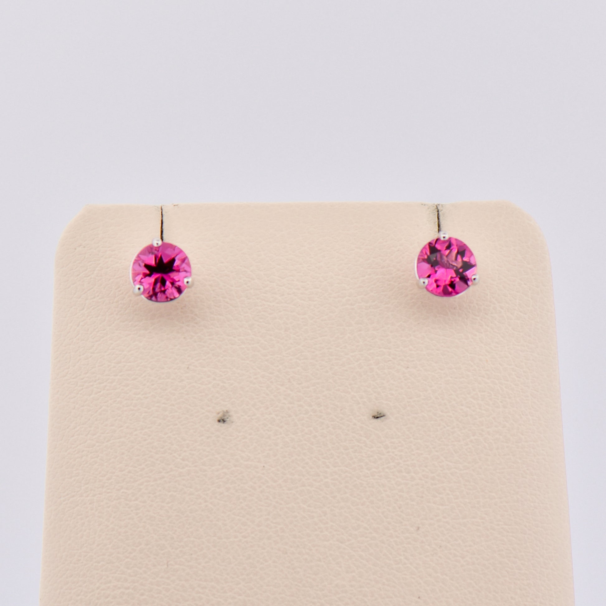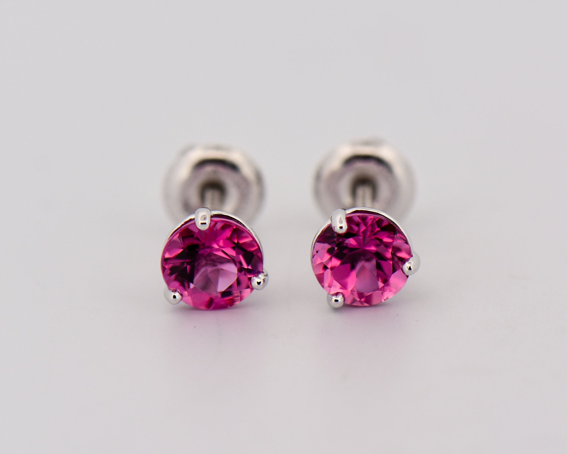 Details: 14k white gold stud earrings set with 1.60 carats total weight of natural, untreated Nigerian pink tourmalines in a four-prong martini setting and finished with secure screw-back posts.