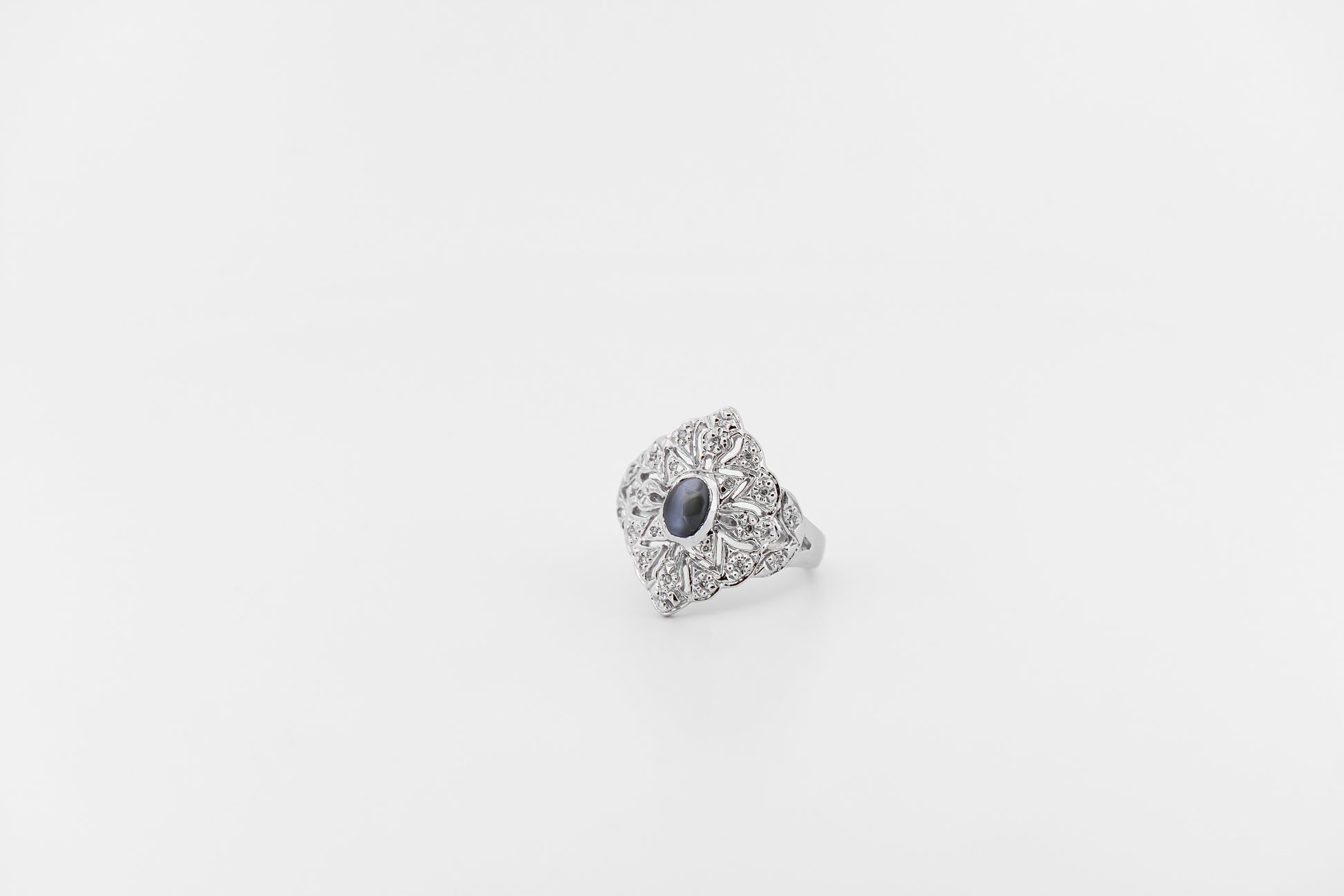 Cat's Eye Alexandrite Ring with White Gold & Diamond Filigree