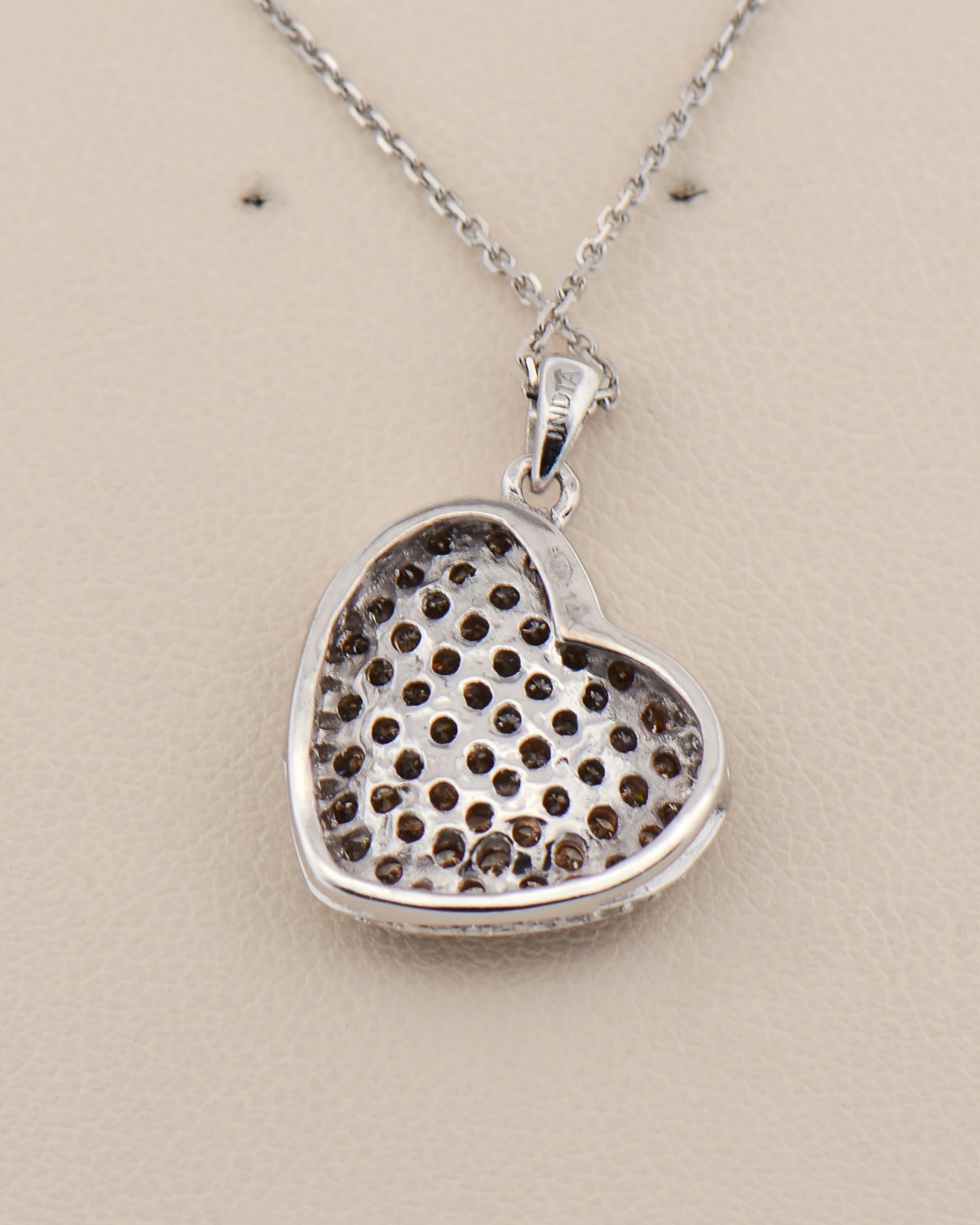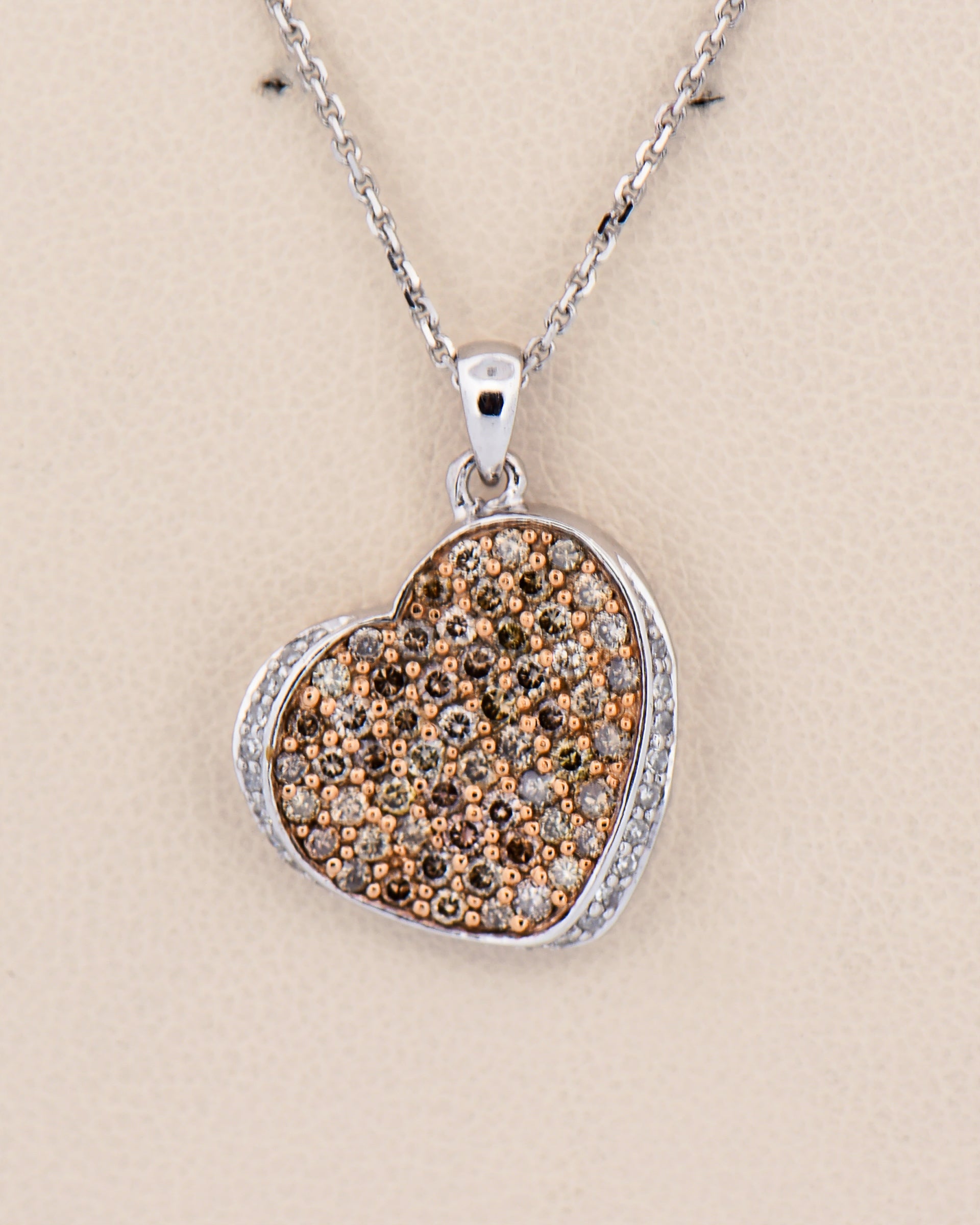 Romantic in form and radiant in sparkle, this champagne diamond heart pendant offers a modern twist on a timeless motif. Set in 14k white gold, the pendant glitters with approximately 1.50 carats of champagne diamonds, their warm golden tones providing a striking contrast against the cool gleam of the gold. The result is a heart that glows with depth and dimension, catching the light with every movement.