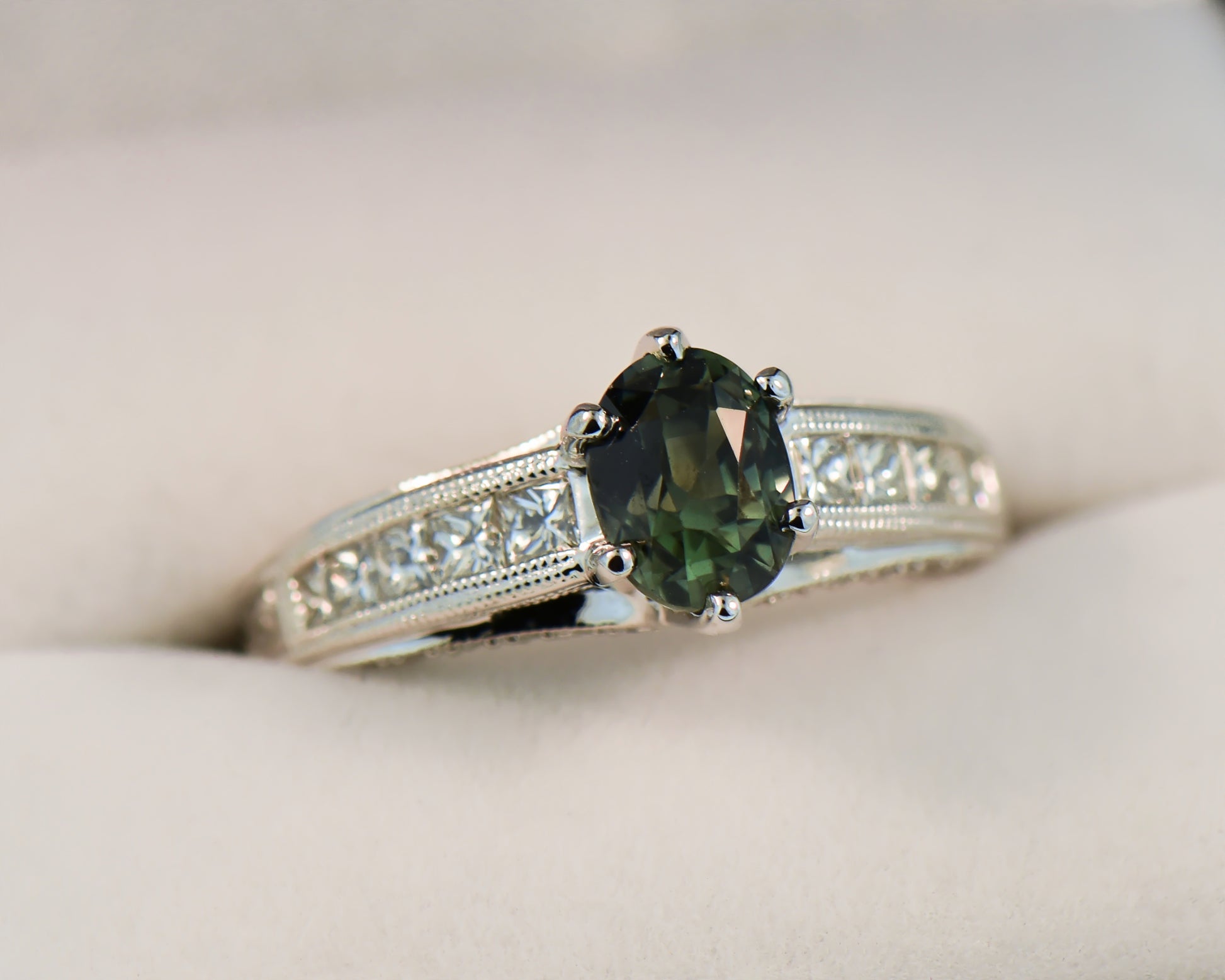 This stunning green sapphire engagement ring is absolutely gorgeous and sure to impress!