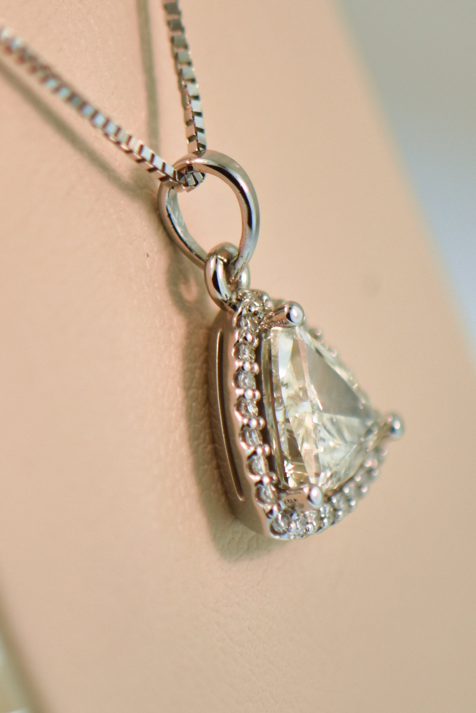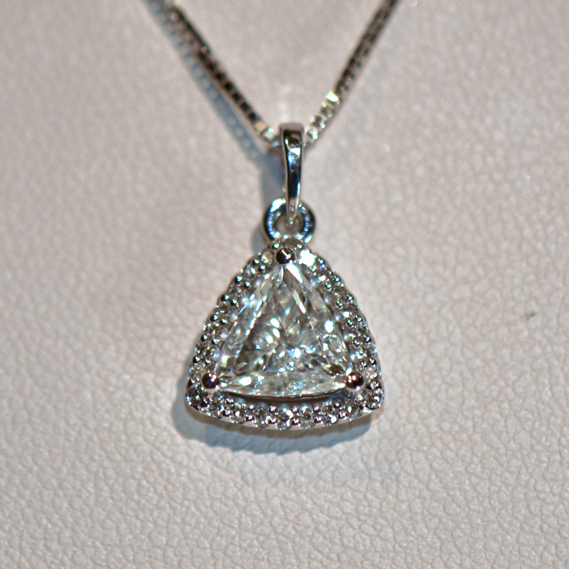 Custom Triangle Halo Pendant with 1ct Trilliant Diamond