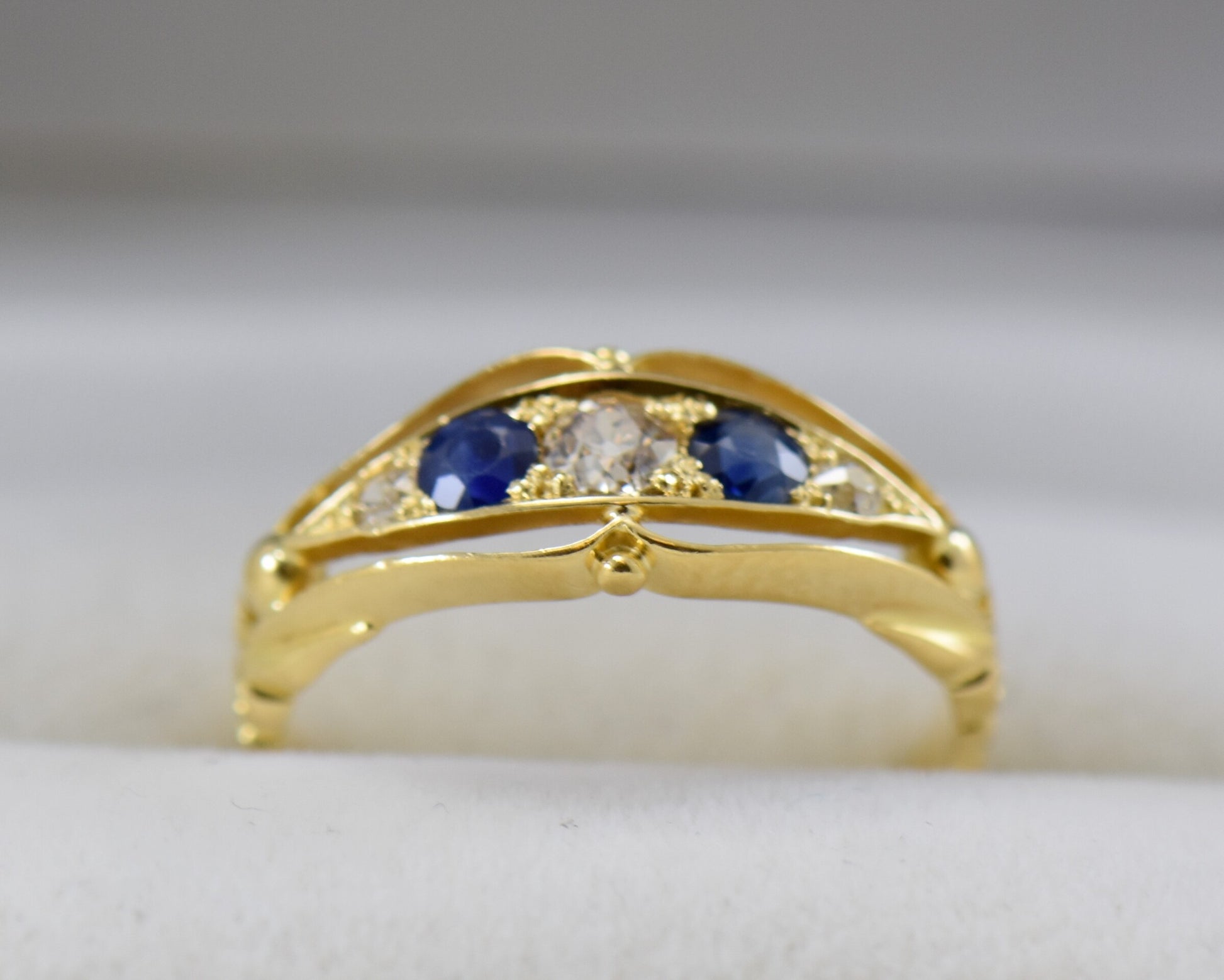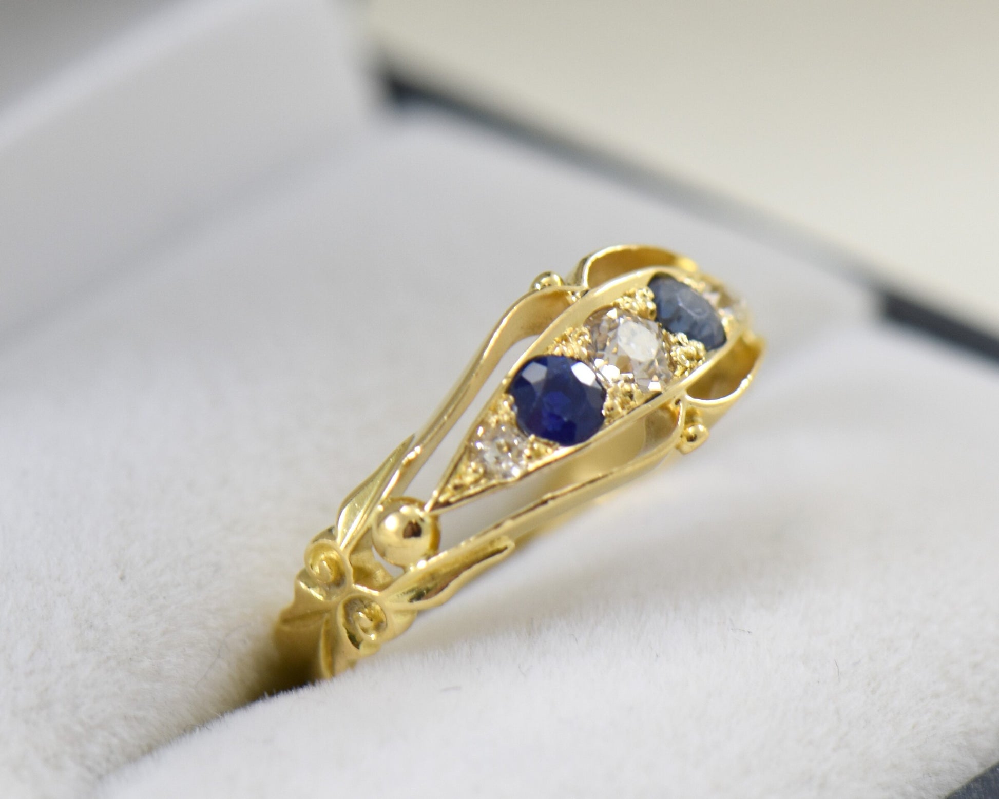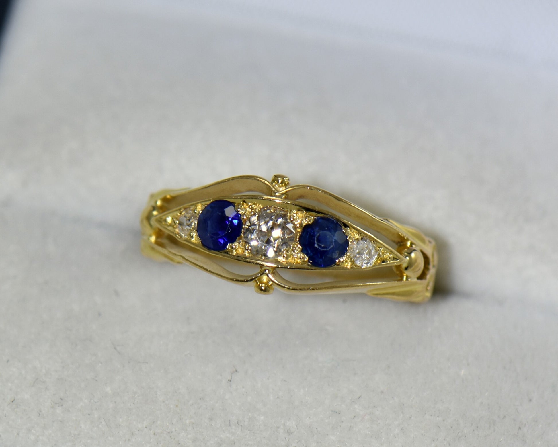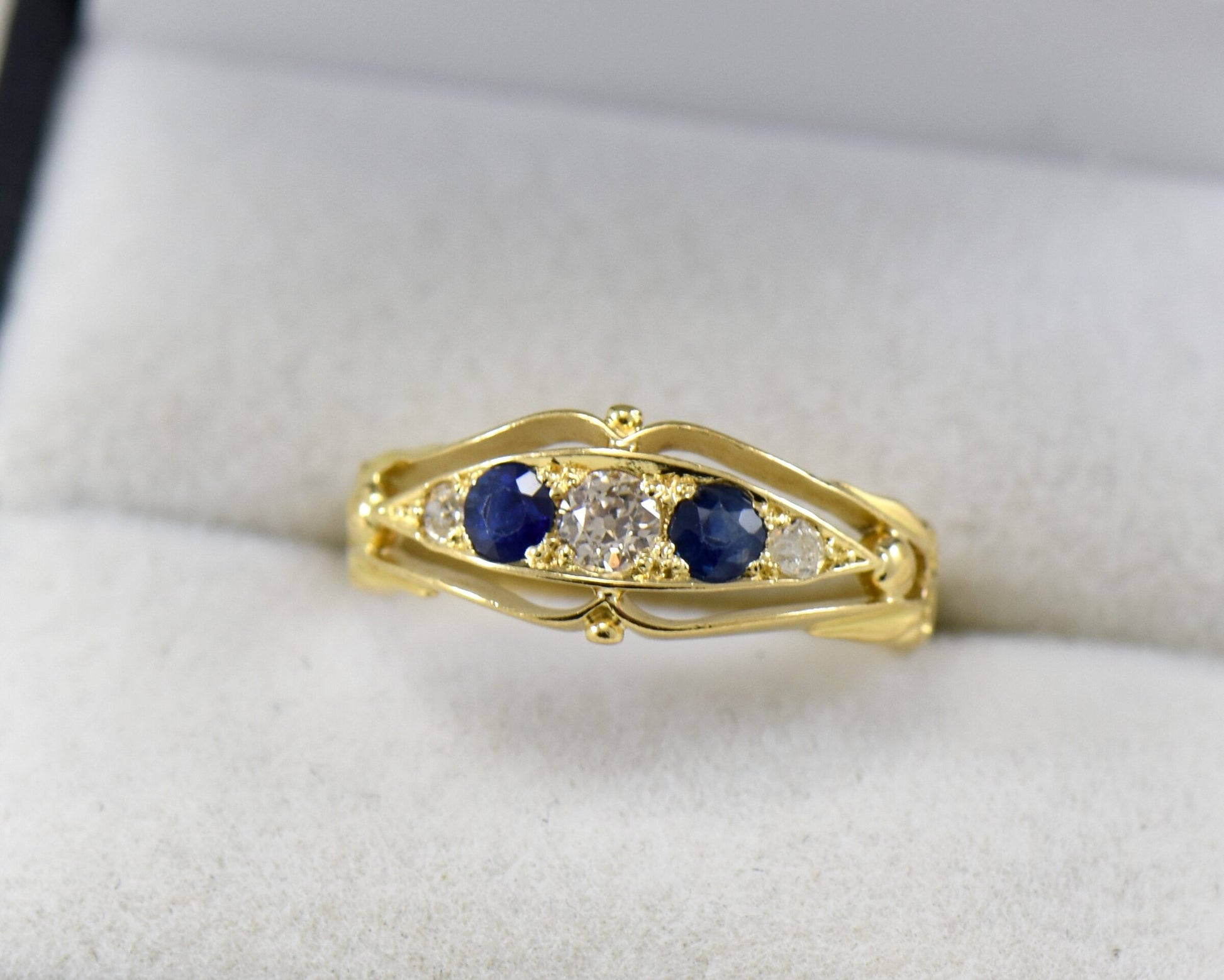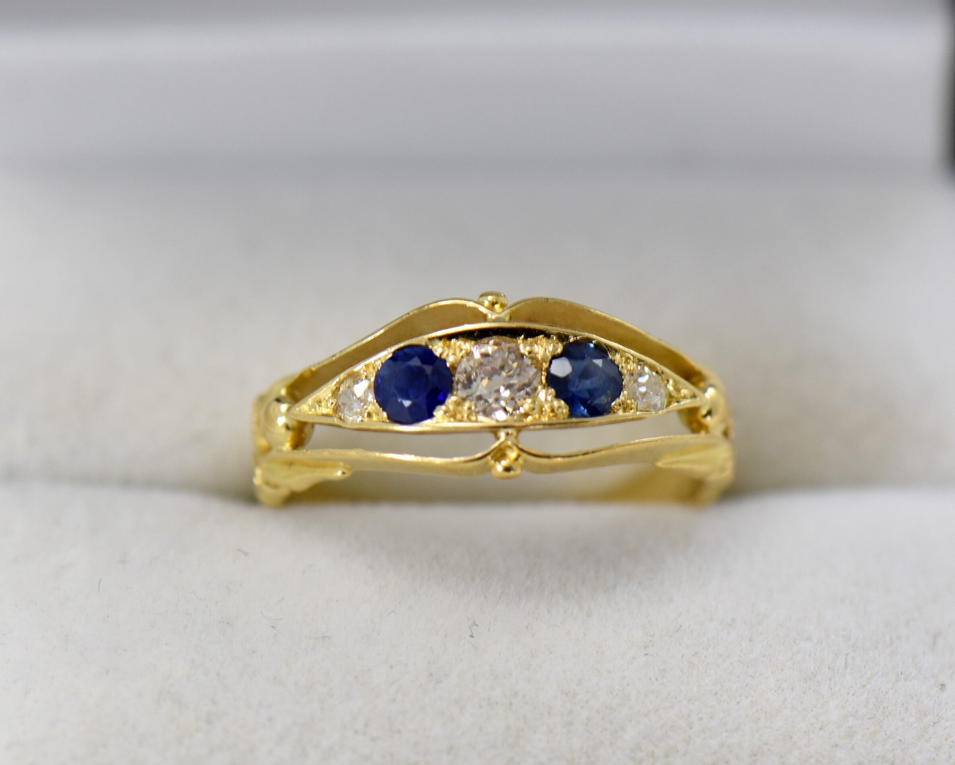 Edwardian British 18k Gold Sapphire & Diamond Wedding Ring