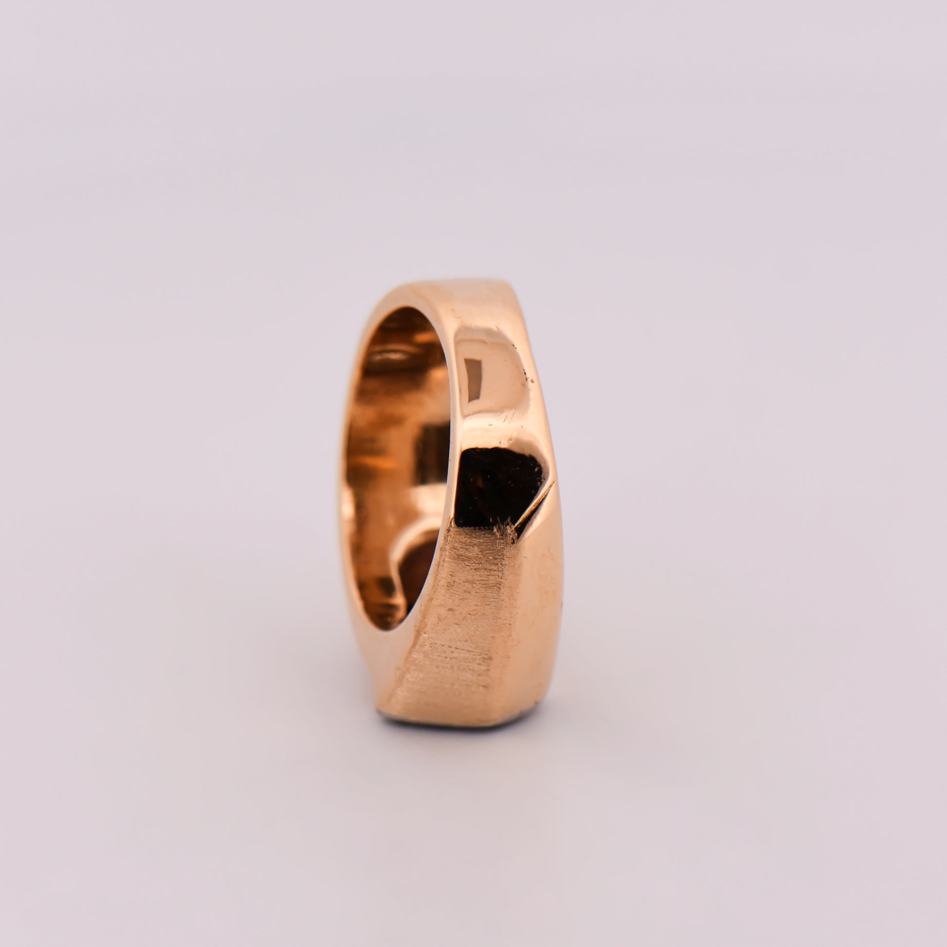 The remainder of the ring is made from solid 14k yellow gold, featuring a light brushed finish and weighing 10 grams. This piece is signed by the legendary local jeweler Larry Rocz, who created custom jewelry in the Seattle area for 50 years before passing in 2016. We are honored to offer this ring in Larry's memory, knowing he would be proud to see his creations cherished by a new generation of jewelry lovers.