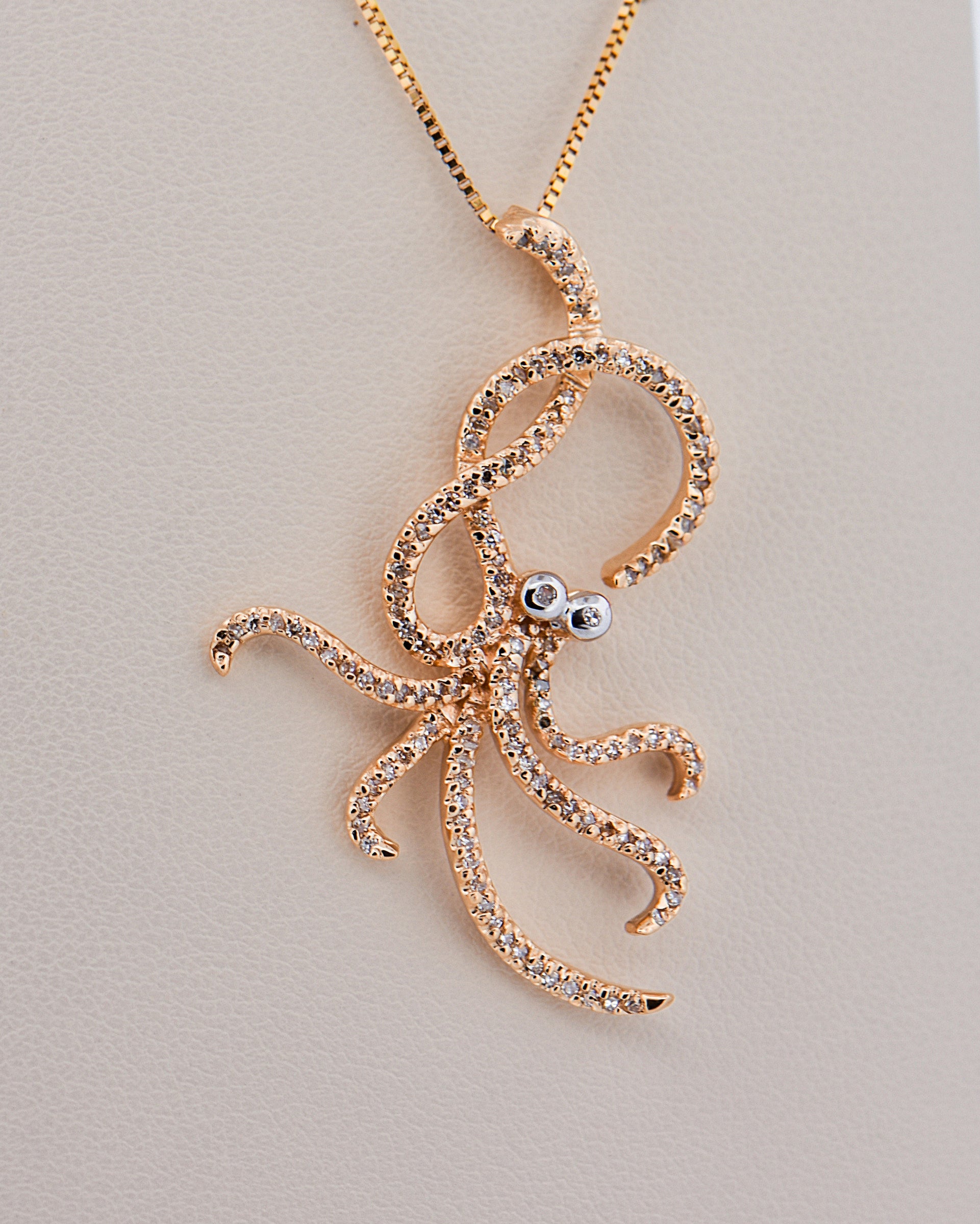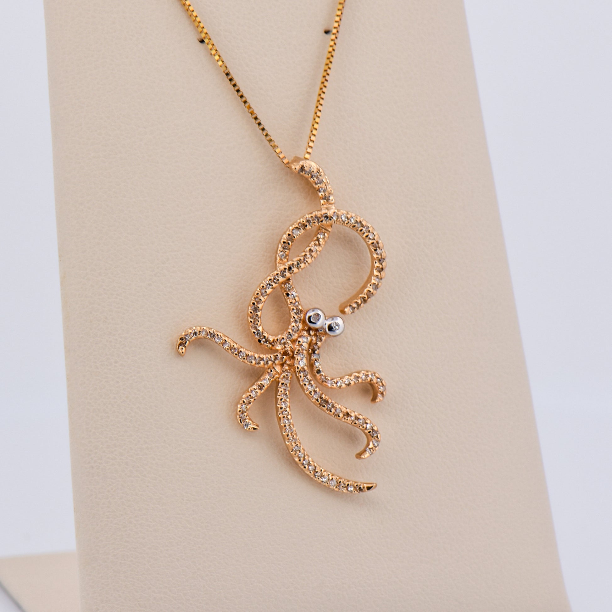Details: Octopus pendant in 14k yellow gold featuring approx. 0.50ctw diamonds (I1 clarity, J–K color); total weight 3.5g; estate piece.