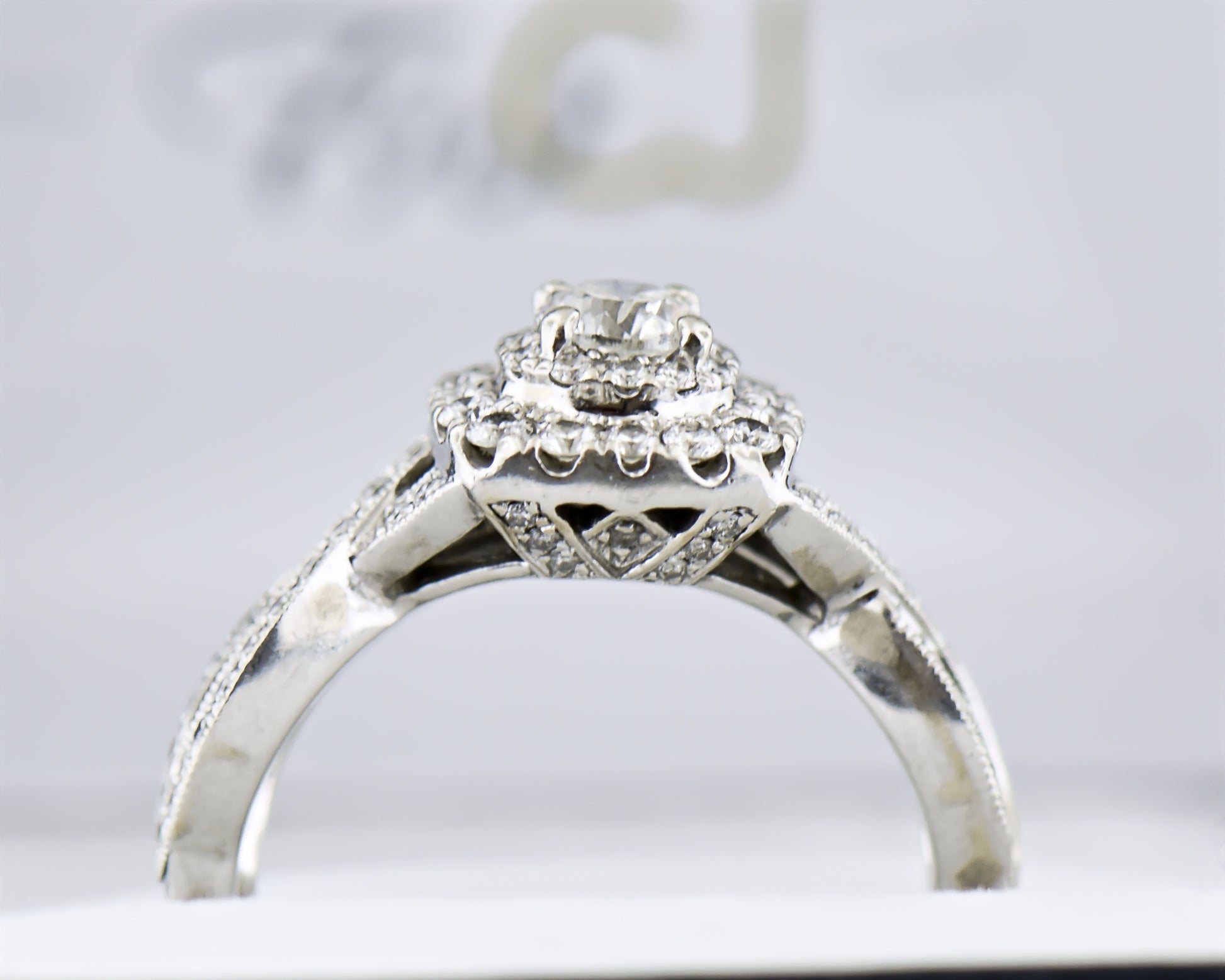 Show your love to the world with this Neil Lane diamond wedding set, a design that is both timeless and elegant. Centered with a 0.30-carat round brilliant diamond, the ring is surrounded by a glittering halo of accent stones that amplify its presence and fiery brilliance. The intricate craftsmanship highlights Neil Lane's signature style, where every detail is designed to enhance the beauty of the center stone.