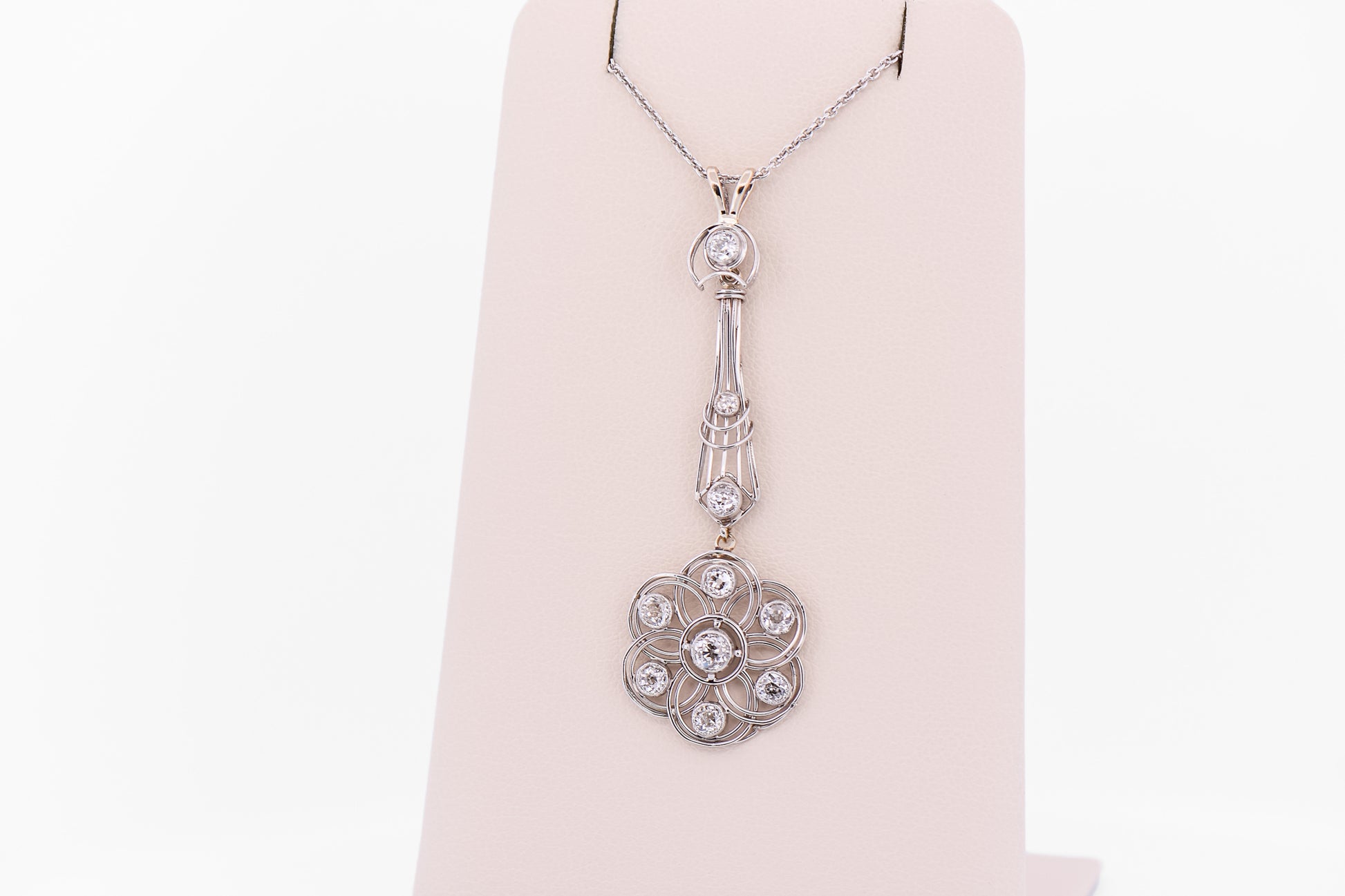Exceptional Art Deco Platinum & Diamond Floral Lavalier Pendant