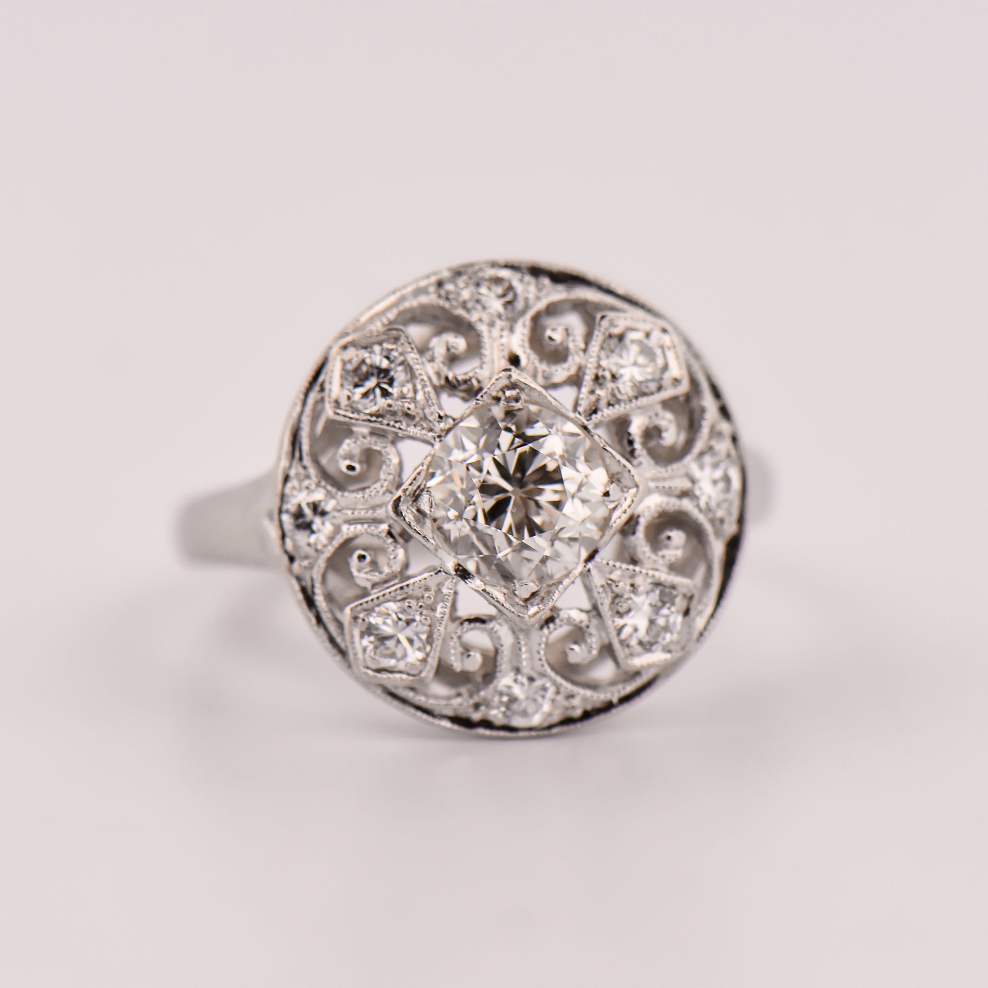 Late Art Deco Round Diamond Filigree Ring- Bombe Style