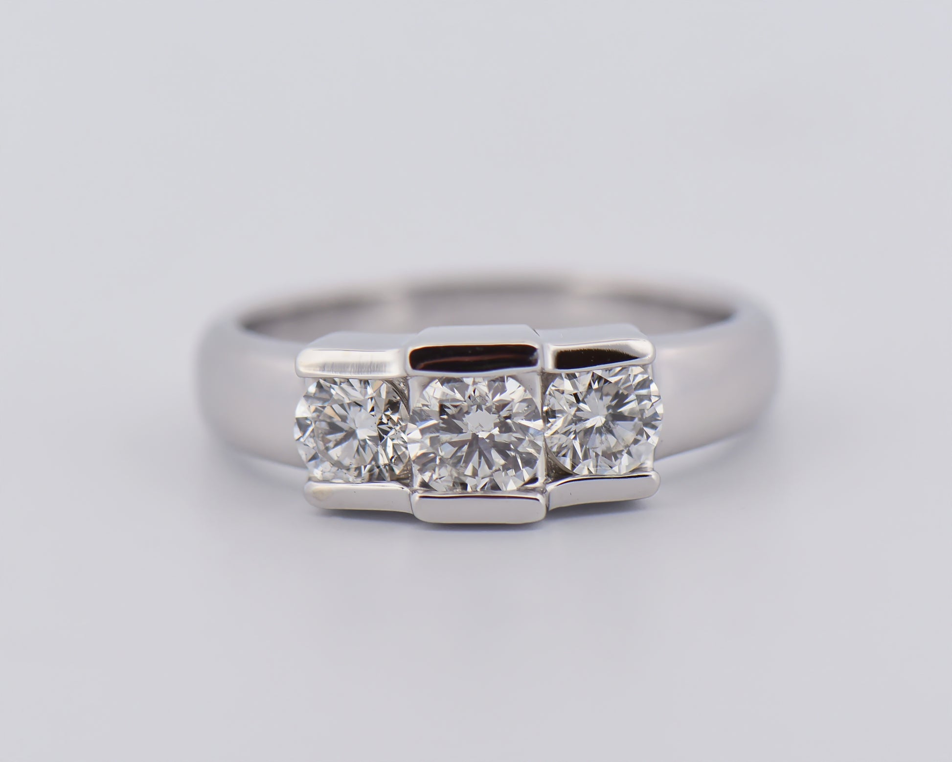 Low-Profile White Gold & Diamond 3-Stone Ring