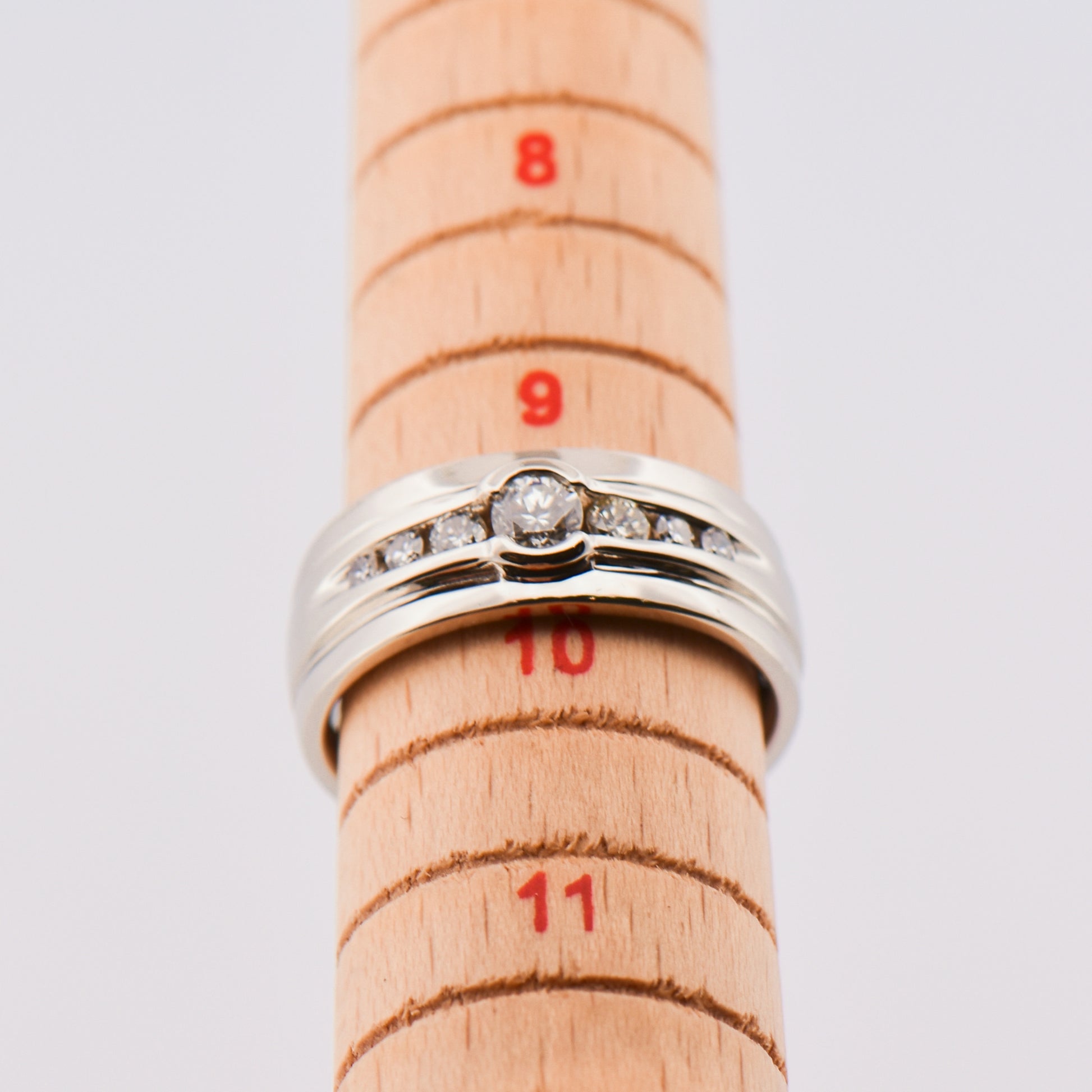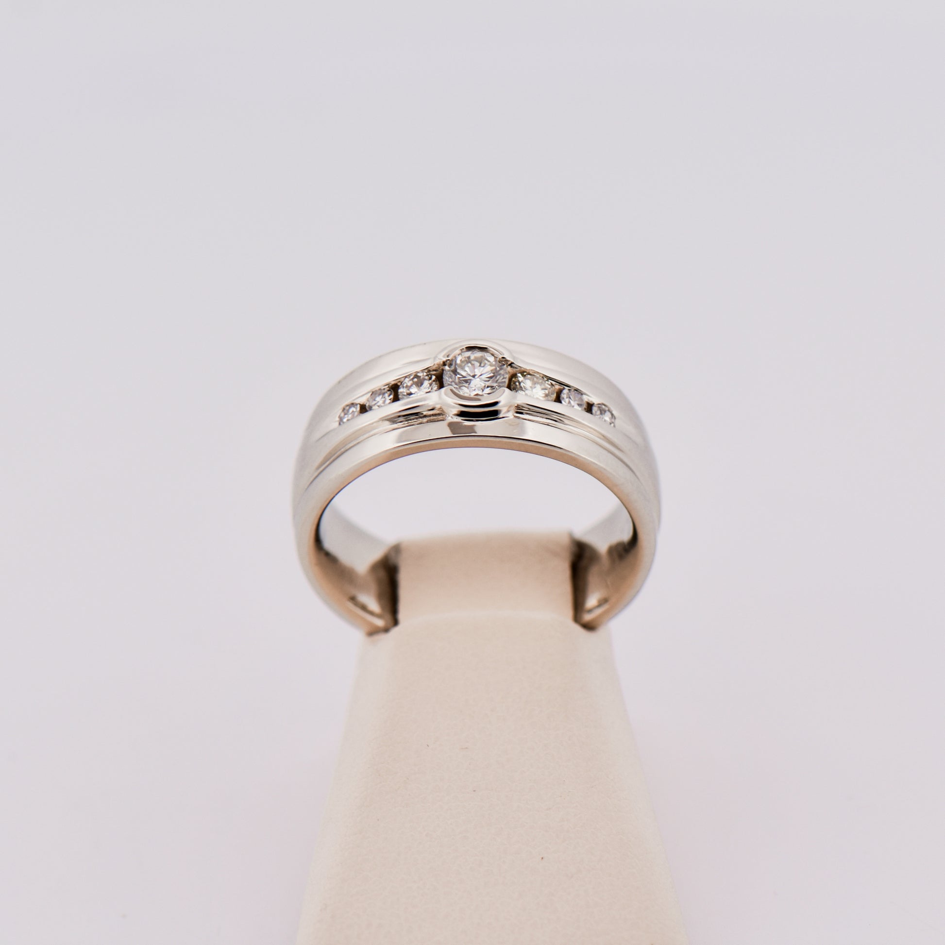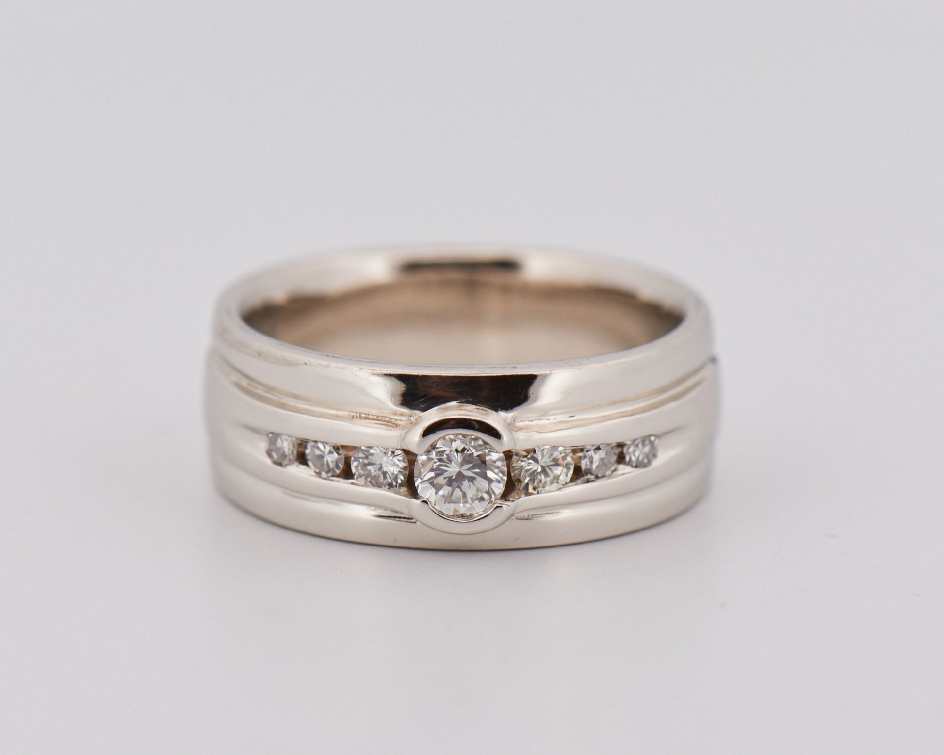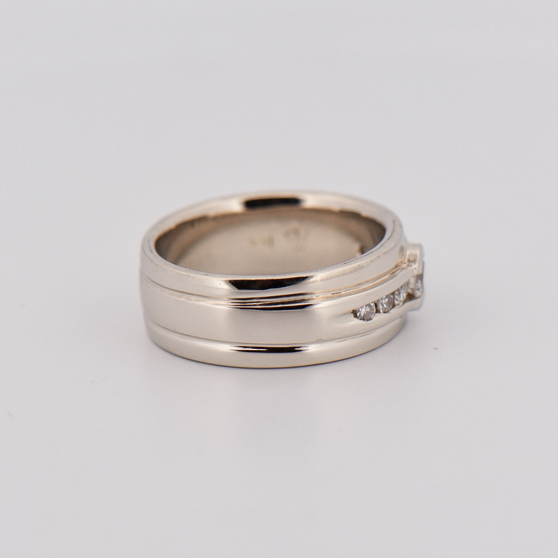Details: 14k white gold men’s wedding band with channel-set diamonds (approx. 0.50ctw), comfort fit, 8.5mm width, total weight 12.6g