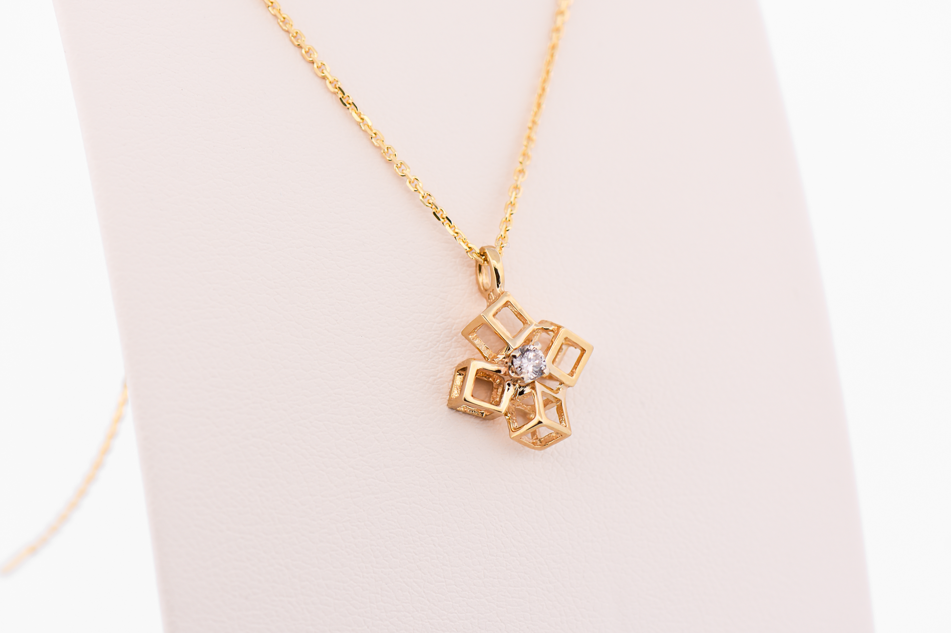 Mid-Century Modern Cubist Gold Pendant with Diamond Accent