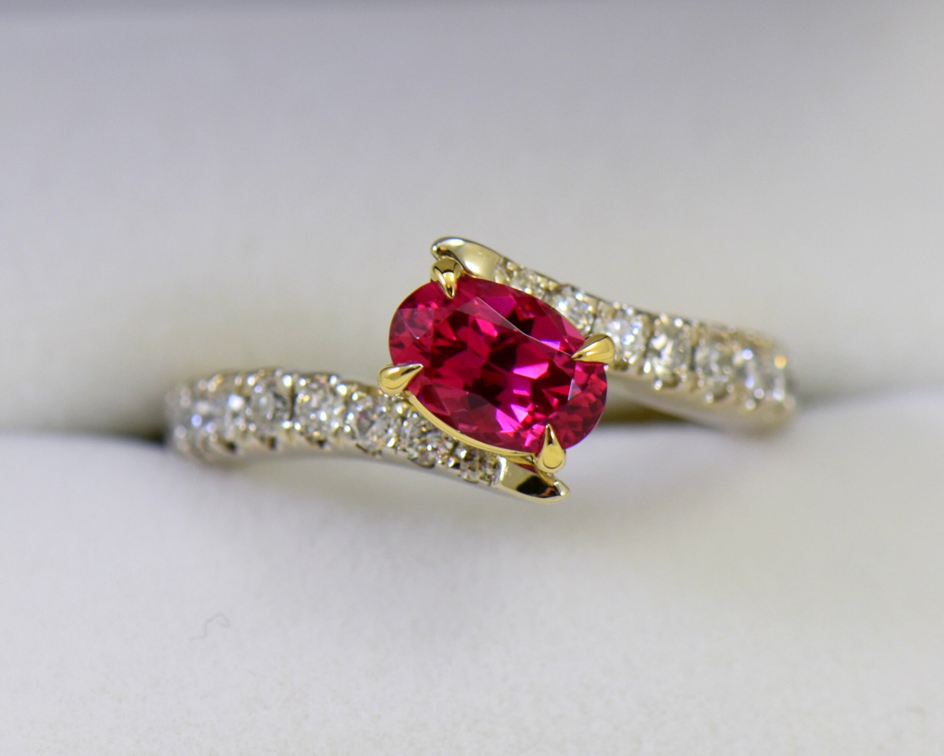 Neon Reddish Pink Spinel & Diamond Bypass Ring