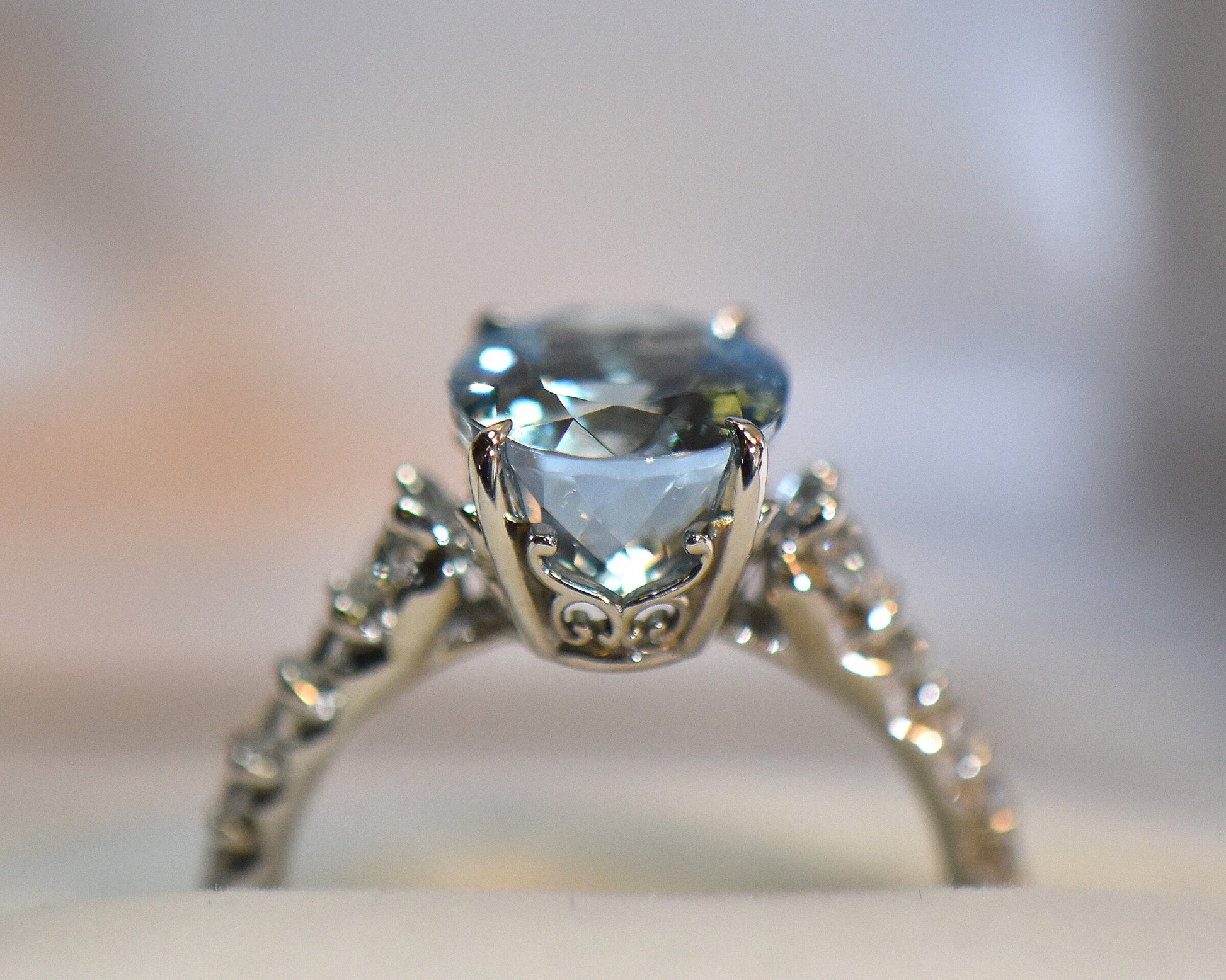 Oval Aquamarine & Diamond Engagement Ring- Top Color!