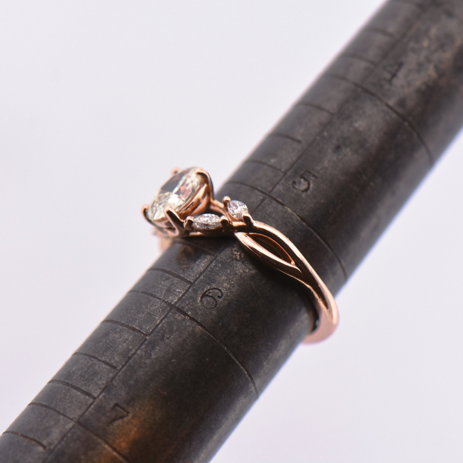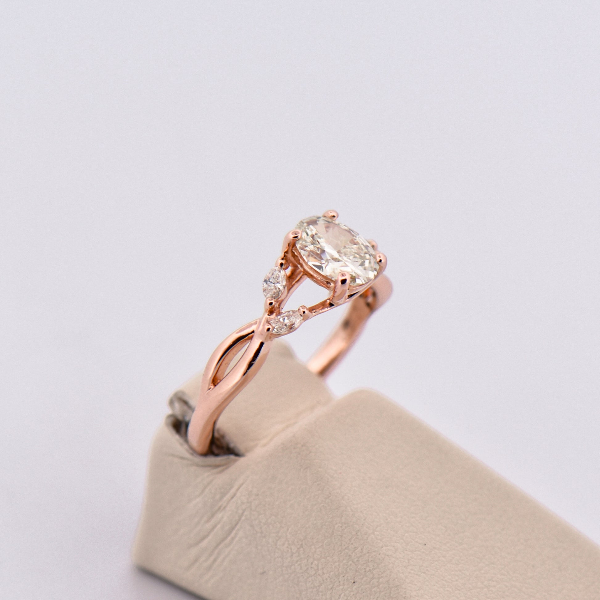 Oval Diamond Engagement Ring with Rose Gold Branch Design