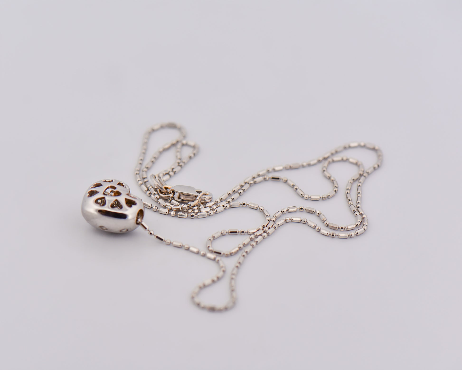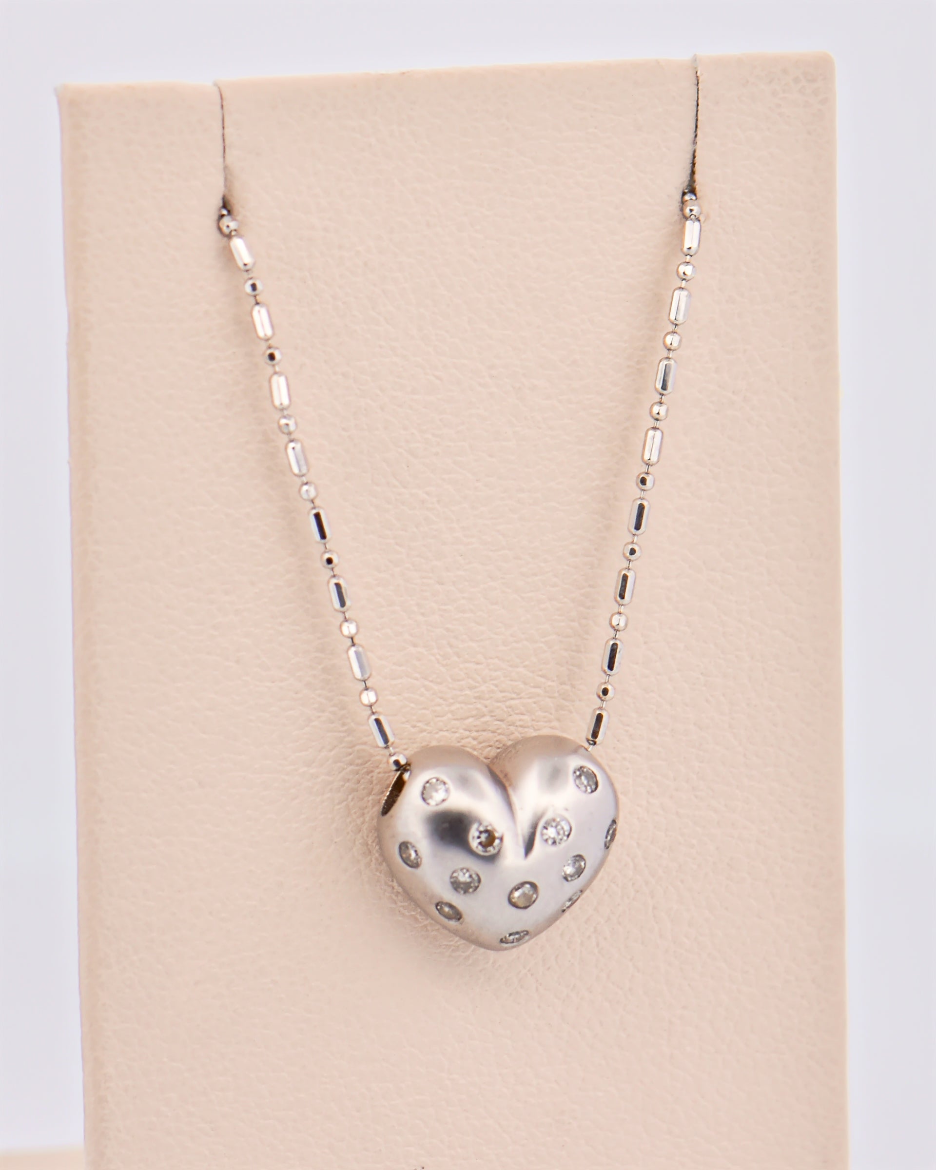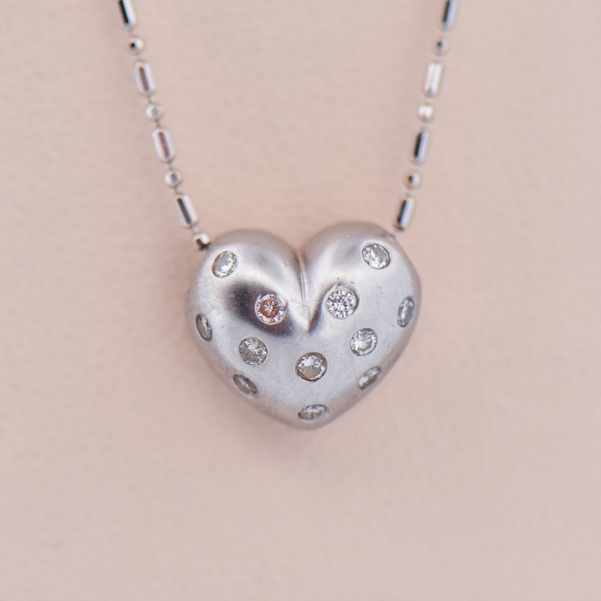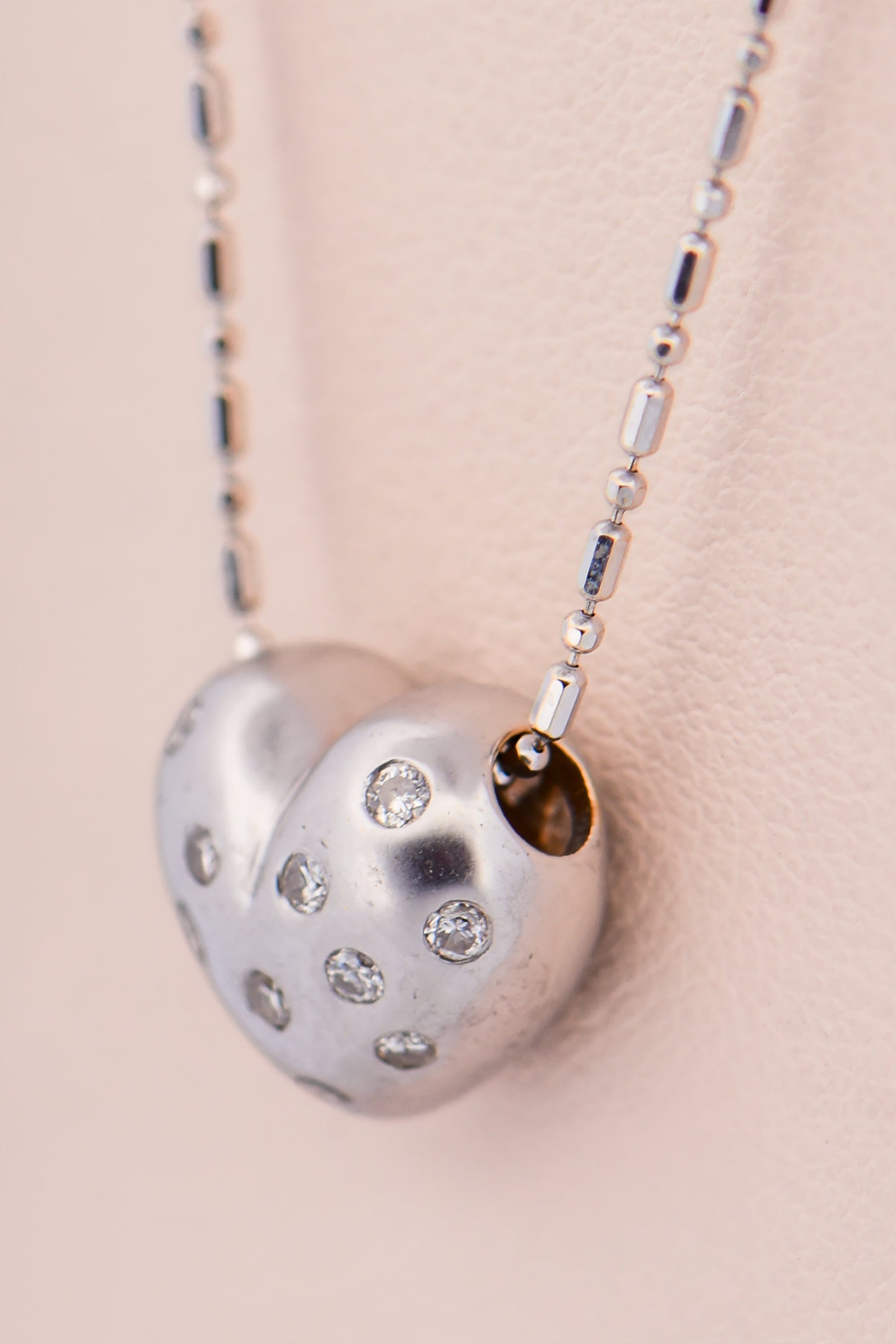 Details: Puffed Étoile heart pendant in 18k white gold with star-set diamond accents totaling approx. 0.24ctw (SI clarity, G–H color); accompanied by 18-inch chain; estate piece.