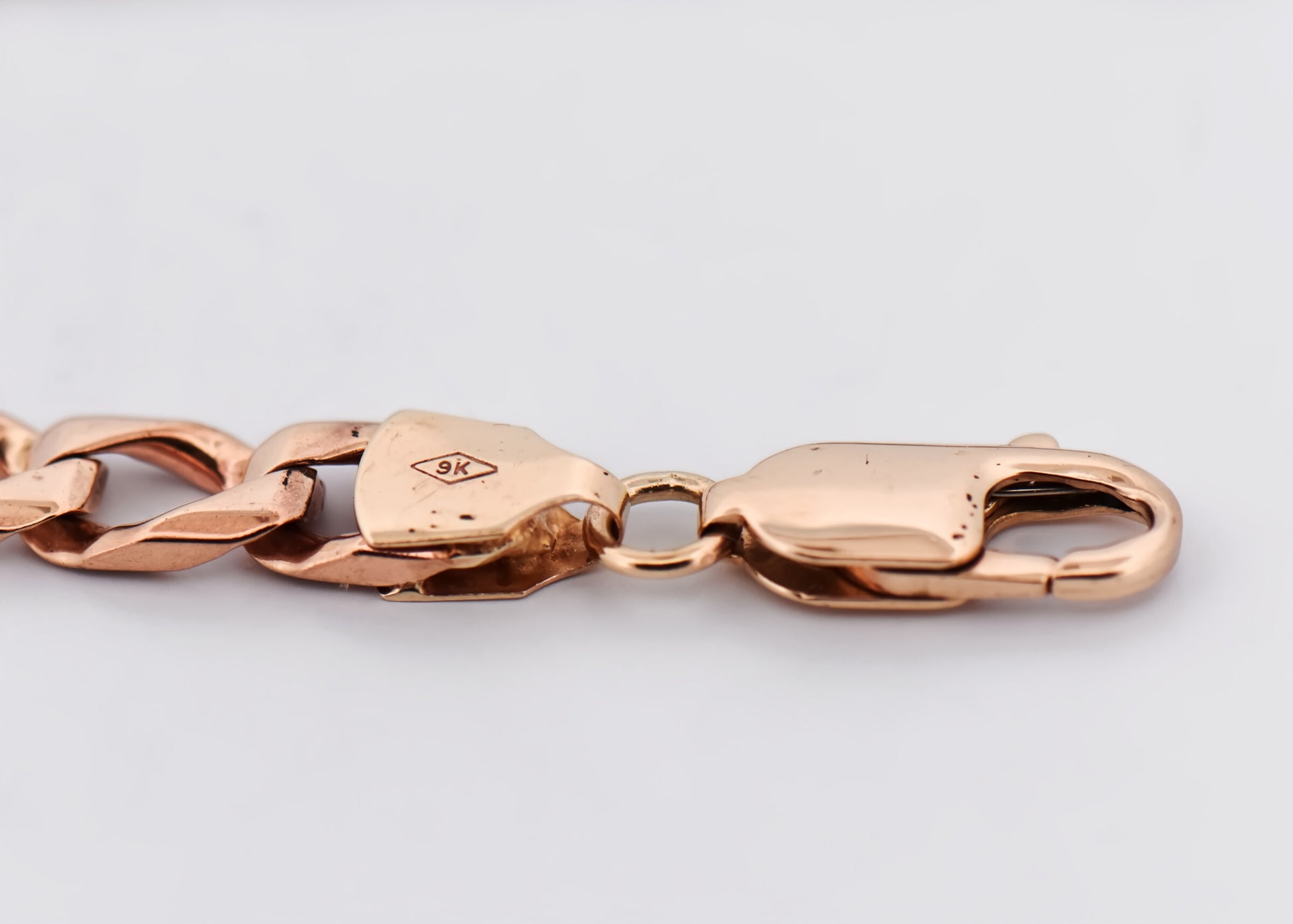 Classic yet contemporary, this rose gold faceted curb link bracelet offers timeless sophistication with a touch of modern edge. Crafted in rich 9k rose gold, each link features a subtle faceted design that catches the light from every angle, creating a soft, elegant shimmer.