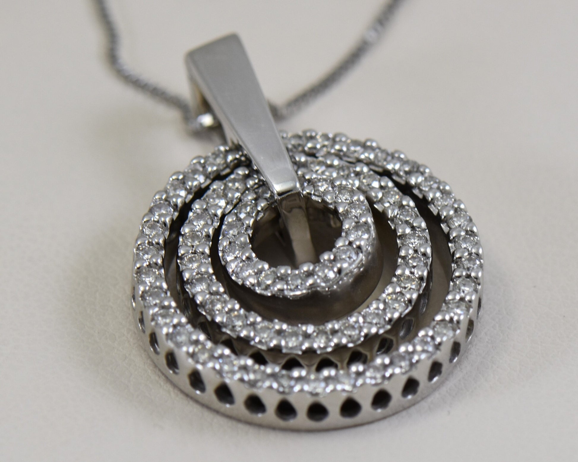 Details: 14k white gold pendant set with 1.30ctw of natural round diamond accents (SI2 GH).