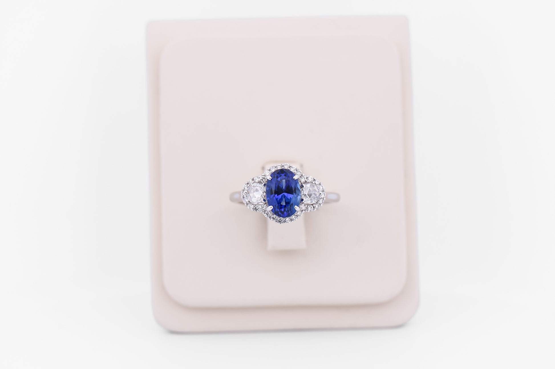 Top Quality 2.5ct Oval Blue Sapphire & Rose Cut Diamond Ring