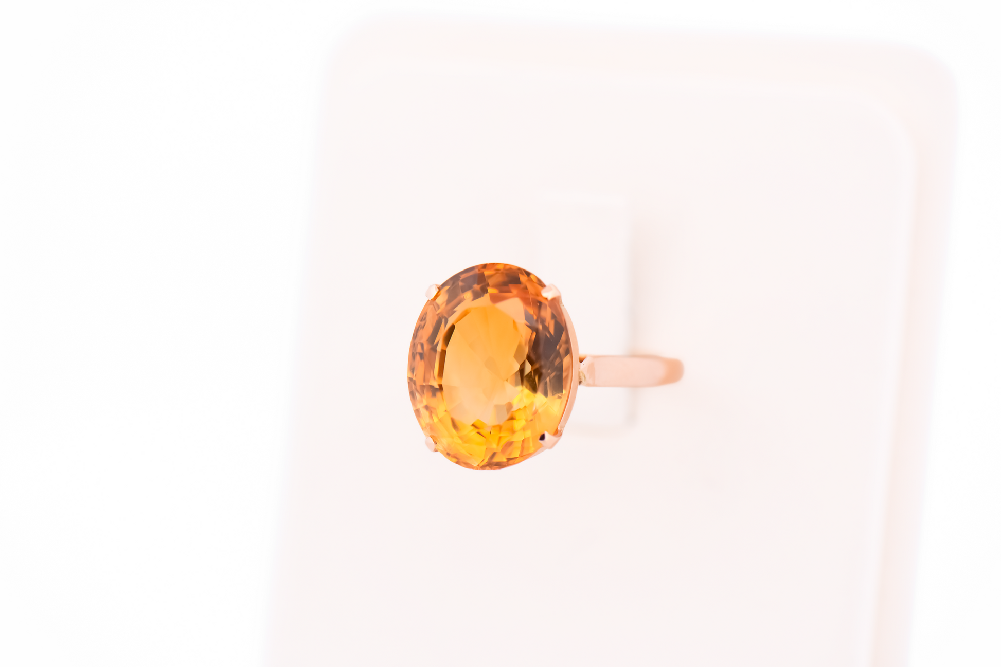 Details: Vintage citrine solitaire ring in 14k yellow gold; approx. 8.00ct oval citrine; size 6.5; circa 1960s.