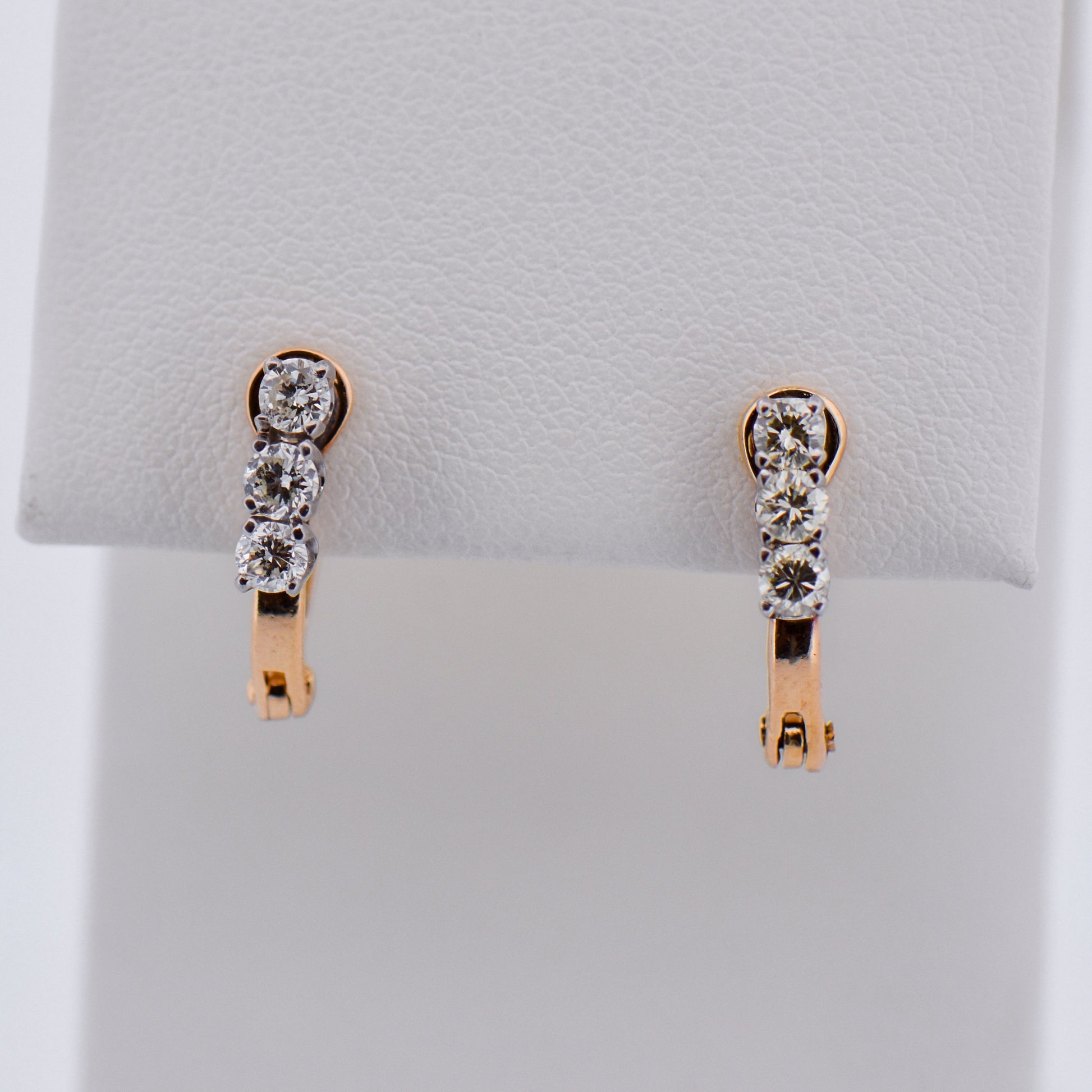 A classic jewelry staple, these vintage diamond leverback earrings blend old-world charm with modern wearability. Crafted in romantic 14k rose gold, each earring features a trio of sparkling round diamonds that catch the light with every movement, delivering a refined and radiant finish.