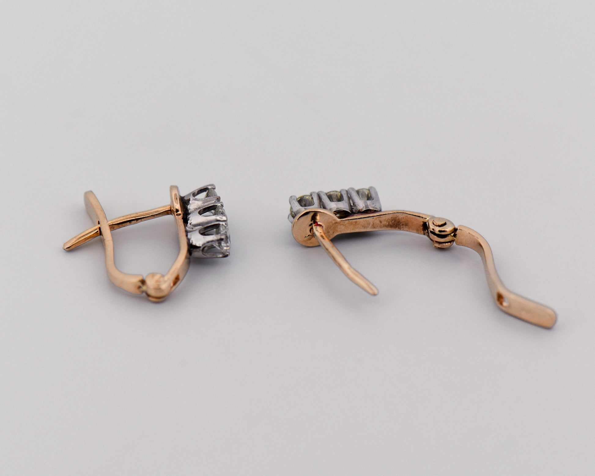 Details: Vintage diamond leverback earrings in 14k rose gold; approx. 0.34ctw round diamonds (SI clarity, G–J color); secure leverback closures; elegant drop style; circa mid-20th century.